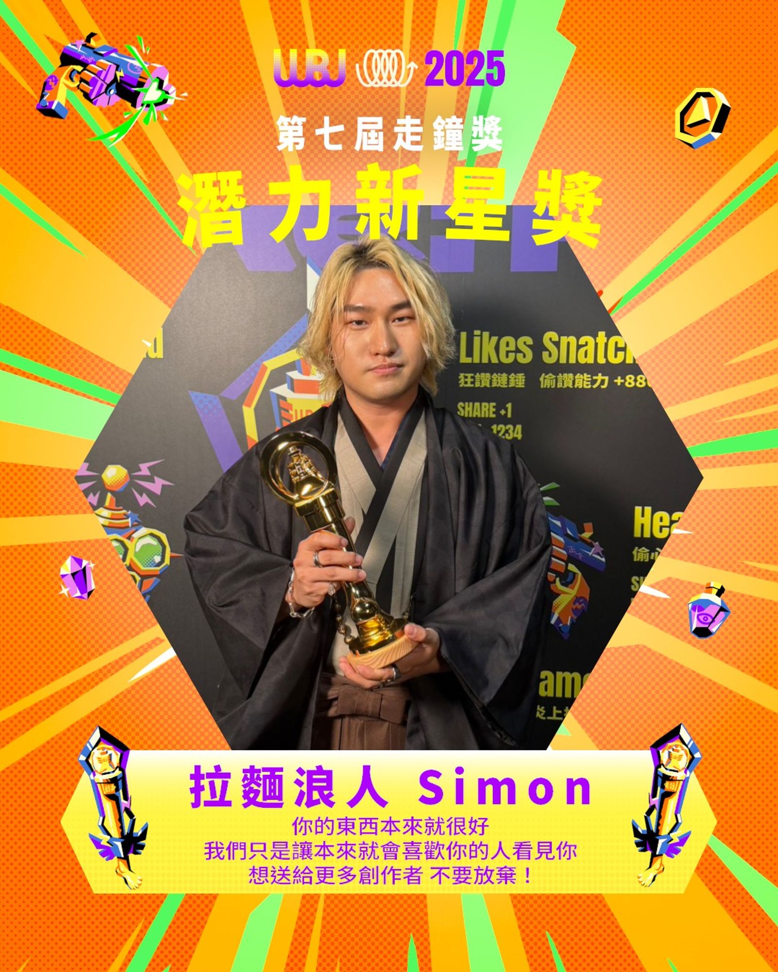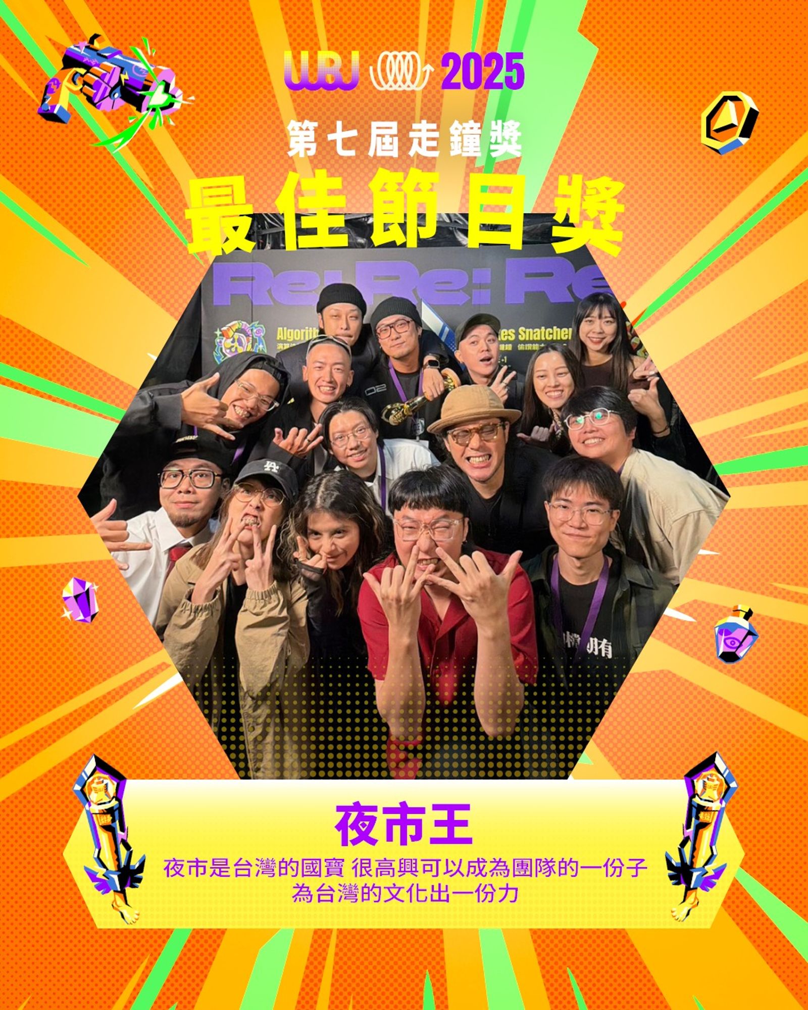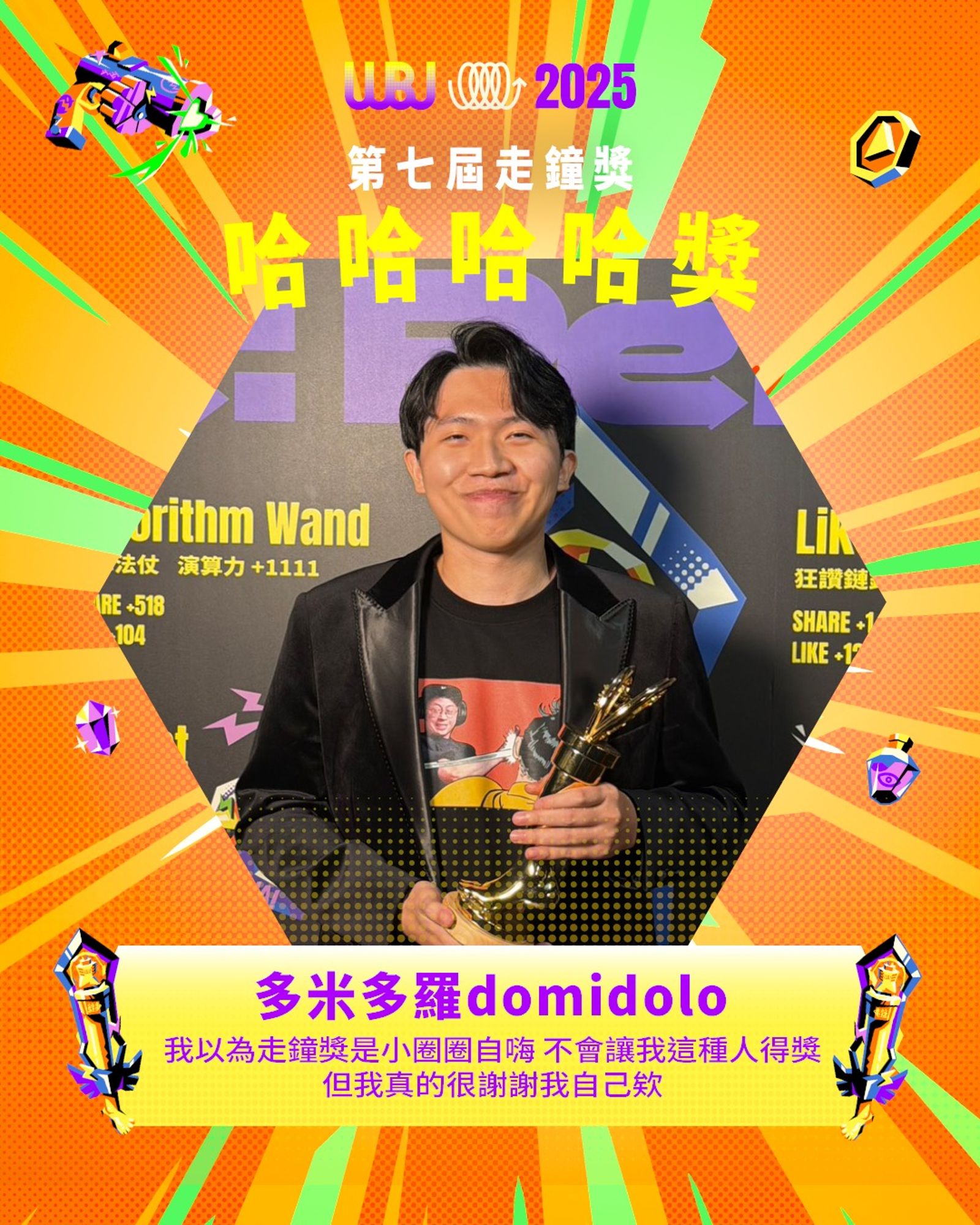 走鐘獎(Walk Bell John Awards)是台灣專為YouTuber與網路創作者設立的頒獎典禮,由「上班不要看」頻道於2019年發起,靈感來自金馬、金鐘、金曲獎,表彰遊戲、知識、訪談、搞笑、美食等領域的優秀內容,如「一級玩家獎」與「哈哈哈哈獎」。第七屆頒獎典禮於今(15日)舉辦,所有獎項已揭曉完畢。