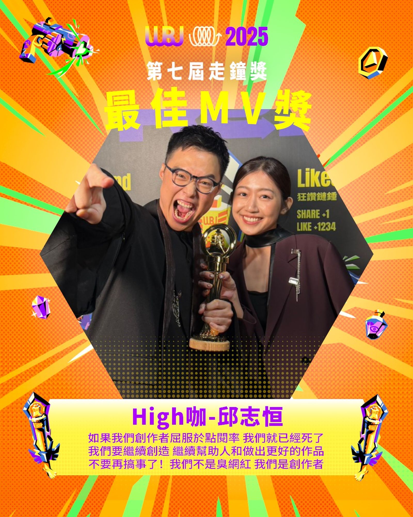 走鐘獎/High咖得獎上台開酸「粿王不倫戀」 感謝女友「沒吵著去美國玩」