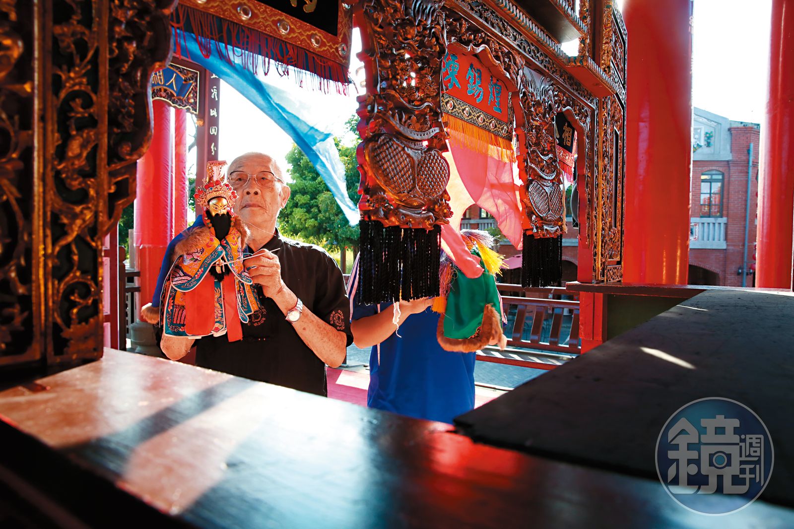 週末我們到大稻埕戲館看他與藝生演戲,木雕綵樓金碧輝煌,後場鑼鼓鏗鏘作響,台下擠滿觀眾,仍是不願布袋戲沒落。陳錫煌看著外邊走廊上的老照片,是當年他與李傳燦仍在亦宛然的日子,兄弟演戲,父親在旁監督。他落寞地說:「現在他們都死了,剩我一個而已了。」最好的時光凍結在那裡,戲裡角色忠孝俠義,戲外人生悲歡離合,抵不過時間流逝。