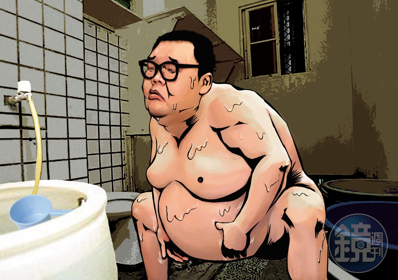 土豪哥身高180公分,體重180公斤,如此噸位,讓他在看守所裡吃盡苦頭,連上個厠所都比一般人困難。
