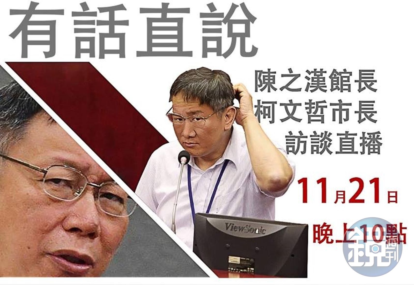 稍早館長也在臉書「飆捍」po文證實,「緊急通知晚上10點,柯P會跟我做直播訪問。」還特別提醒粉絲們「用力分享」,隨後還附上一張館長與柯文哲的合成照,正式預告今晚的直播訪談,2篇po文短短3小時就吸引4.6萬人次按讚,直播還沒開始就在網路上引起熱議。