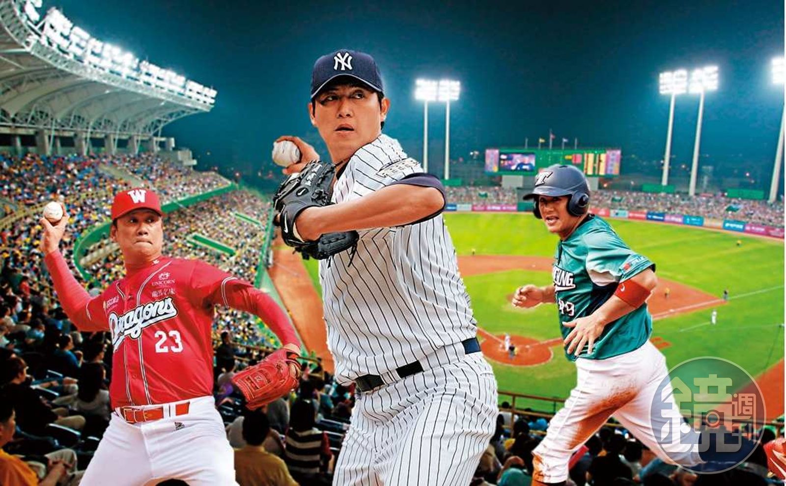 味全龍最快明年重返中職,目前鎖定網羅「台灣之光」王建民(中)、「金臂人」黃平洋(左)及「森林王子」張泰山(右)等人納入教練團。(聯合知識庫/東方IC/本刊資料照)發布時間:2019.01.16 05:58 臺北時間