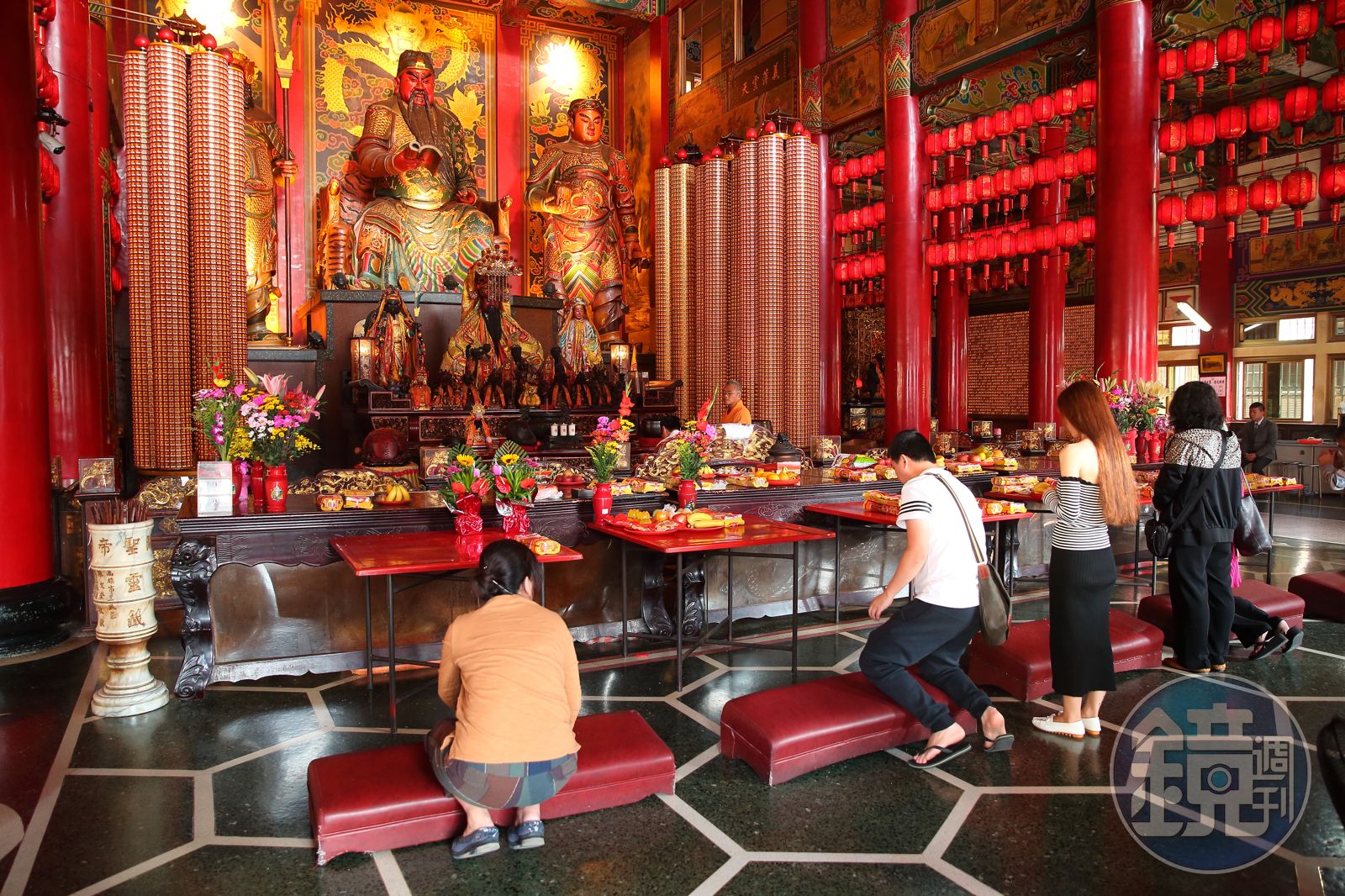 「我每個月都會來這裡參拜,求業績好,當然身體健康也一定要求,尤其跑業務在外,出入平安很重要。」壽險業務劉小姐一早帶著女兒來到高雄關帝廟,她分享自己財運愈來愈旺,碰到每年5月民眾報稅的業績淡季,她卻總能維持好成績,而其中祕訣就在於她會提早一個月先來拜拜祈求,她內行推薦:一定要幫一樓財神殿前的金牛貼上金箔。