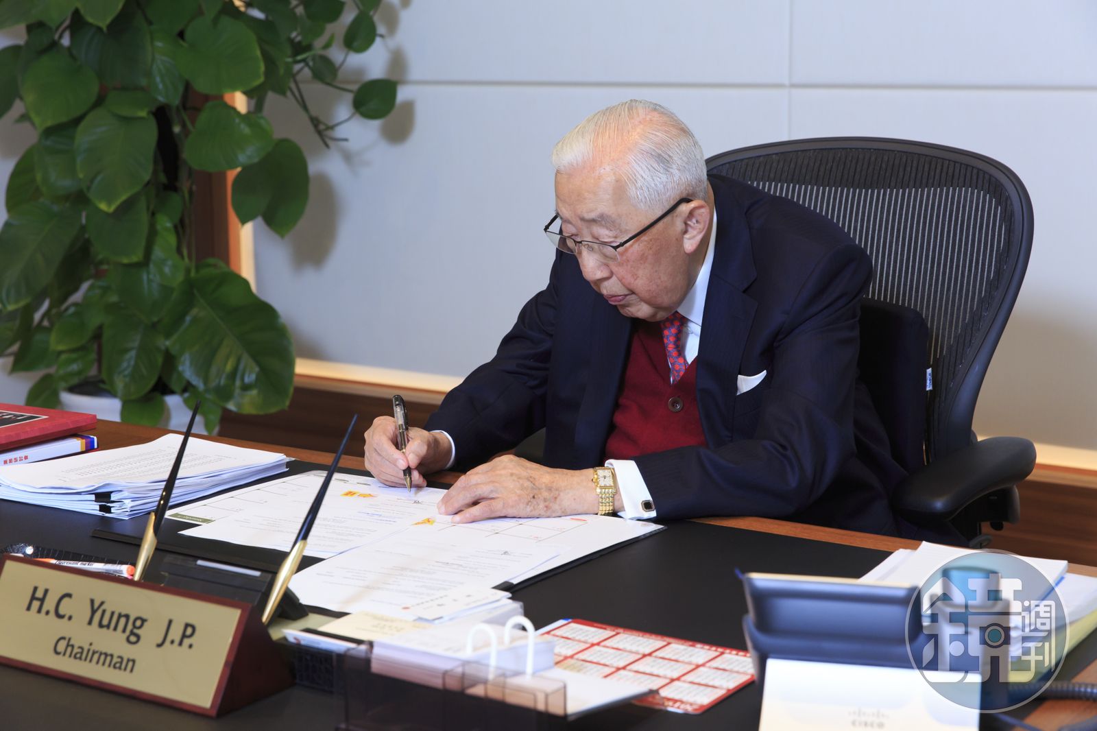 榮家第三代掌門人榮鴻慶,相當高壽,本刊赴港獨家直擊他的住所與生活,記者好奇問到榮鴻慶的養生祕訣,榮鴻慶笑著沒回答,讓照料他起居的太太榮周淑霞發揮。