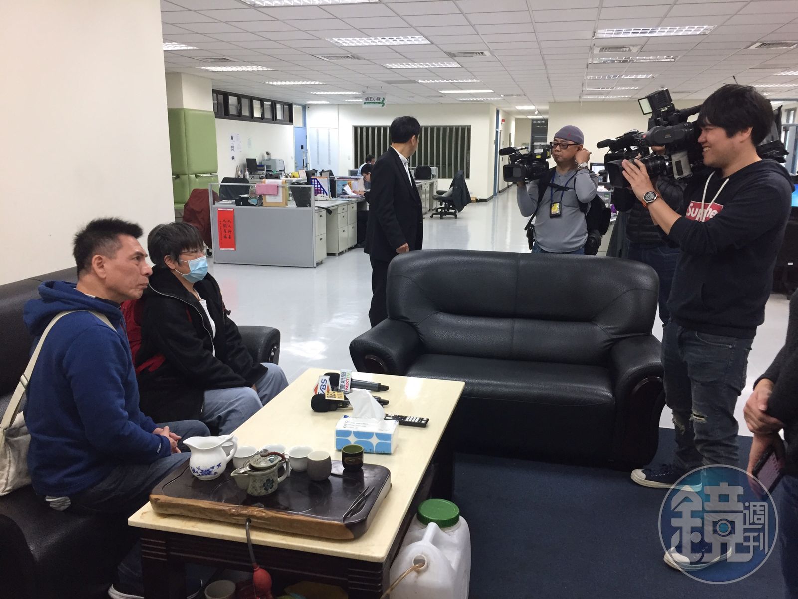 黃光芹遭不明人士在臉書丟訊息恐嚇,她偕同丈夫楊文嘉至林口分局偵查隊提出恐嚇告訴。(翻攝畫面)