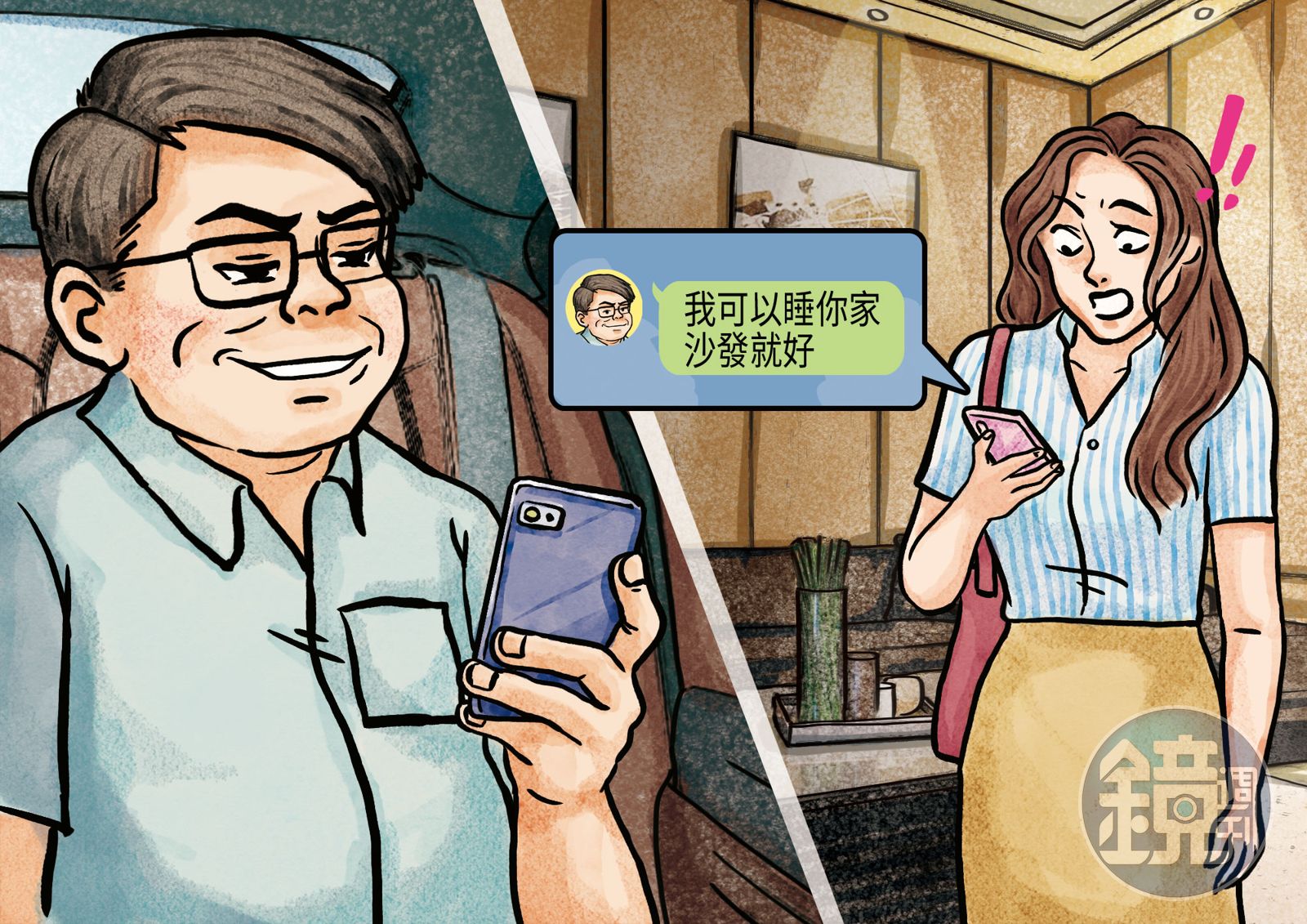 但誇張的是,政風同仁間傳出,小美到家逃下車後,黃仍死賴著想進門過夜,一度想尾隨在後要進小美家裡,被嚇壞的小美嚴詞拒絕,黃吃了閉門羹還不死心,又傳LINE私訊小美,表明自己到她家只要睡沙發就好。