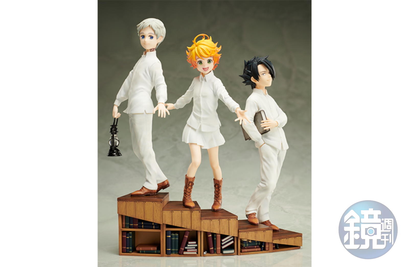 3 位主角各自定價為 8,800 日圓,各有一隻迷你公仔當特典,腳下台階剛好可以拼成圖書館室的樣子。艾瑪和諾曼的預購已經結束,預計 9 月發售。雷的預售日期到 8 月 26 日,預計 11 月正式發售。