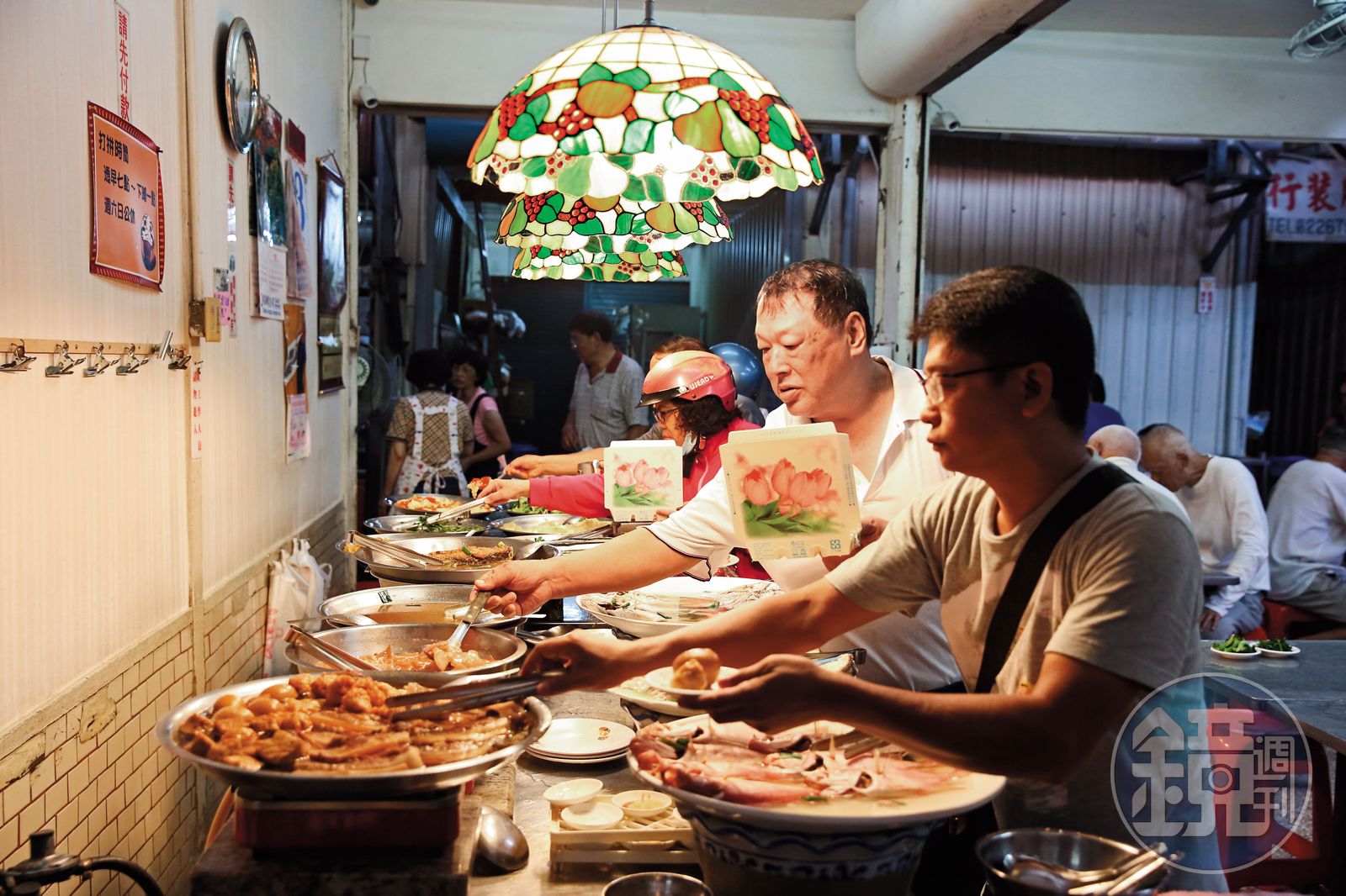 隨著推薦人走進人潮擁擠的室內,數十樣魚料理、肉食、食蔬盡展眼前,乍看像是自助餐或清粥小菜,特殊的是,客人點的每道菜都用小碟分裝,饕客手捧一碗熱騰騰的白米飯,筷子在其中穿梭,簡單一餐便能享受飯桌的豐盛排場,簡直如富豪般的享受,多人併桌一起吃,更可體驗臺南人的餐桌日常。