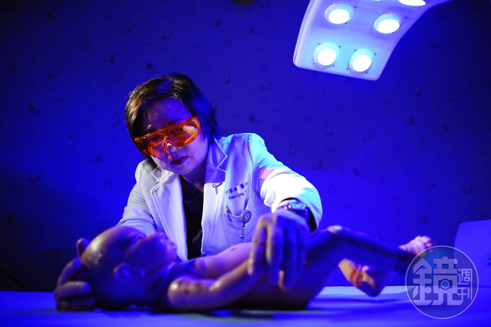 為了尋找真相,尹莘玲說服醫院花18萬元購買「多波域光源儀」,可看出皮下內出血,「有些爸媽會說小孩的傷是溼疹或發炎,可是多波域光源儀一照,無所遁形。」