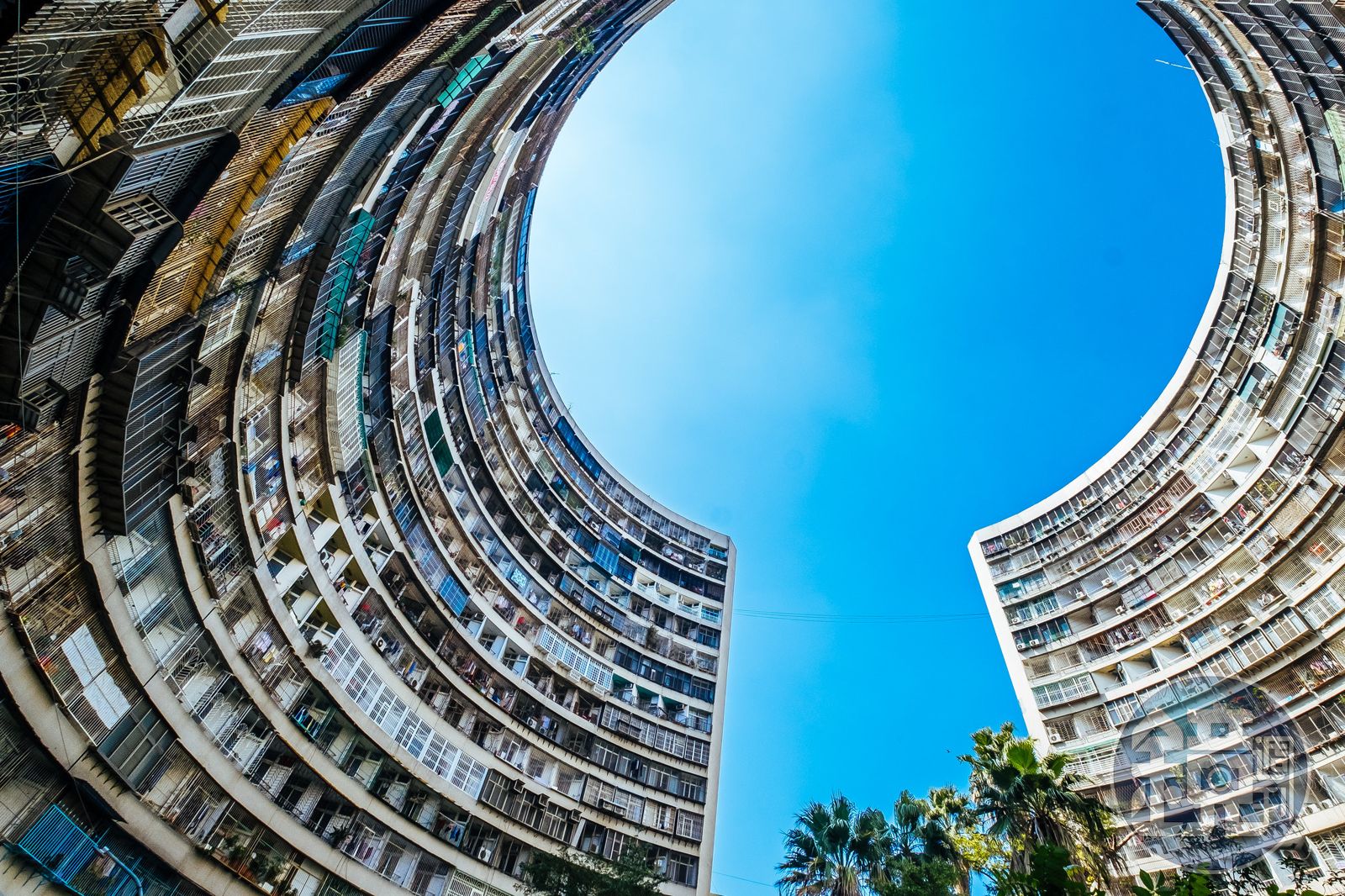 站在兩棟大樓社區公園中央,抬頭仰望這片湛藍的天空,兩棟弧形包圍的大樓真的挺像羅馬競技場。戶戶之間相連緊密,彎曲的這弧度讓人聯想起電影星際效應的電影場景。每戶都像火柴盒般一戶一戶密集排列在一起,就像早期香港鳥籠式的住家大樓,空間狹小。這密集程度可能有些密集恐懼症的人會受不了。靠近一點看,層層疊疊彷彿複製貼上一樣的樣貌。空拍的視角可以更看得出這棟社區的全貌,跟周圍比起來還是很獨特。中庭還有籃球場地,年久也有斑駁的時間感。這樣的大樓弧形建築在台灣很少見,也有可能是唯一。 更新時間|2023.09.12 20:33 臺北時間