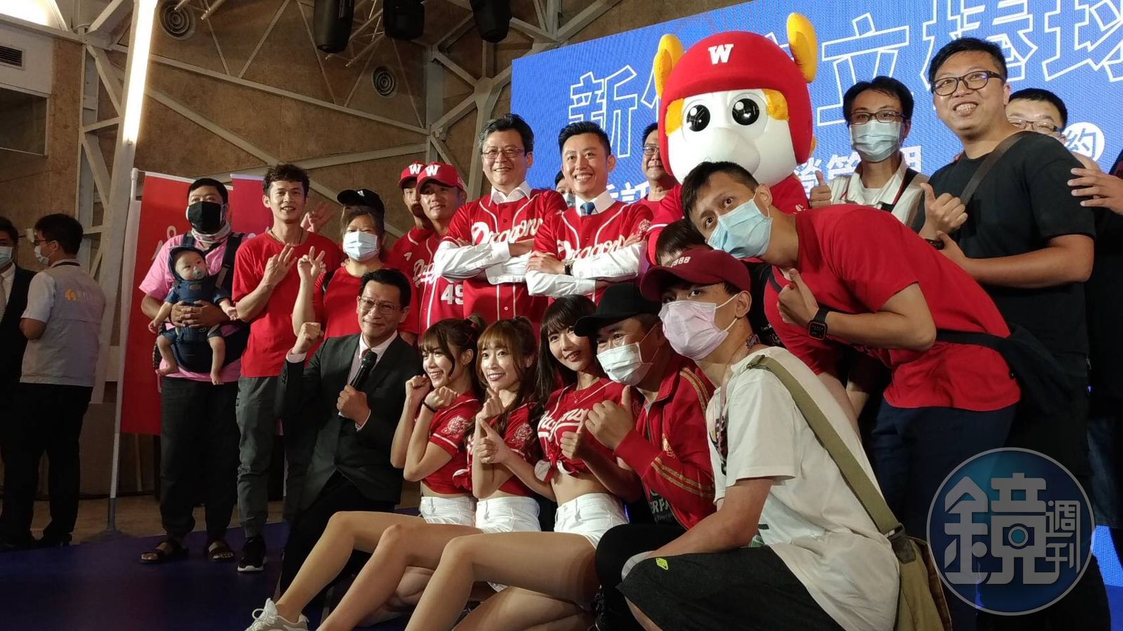 新竹市立棒球場委託民間經營管理OT案,今日舉行委外經營廠商簽約儀式,現場除了味全龍go beauties小龍女帶來精采開場,吉祥物威弟(Weddie)也首次出任務亮相。
