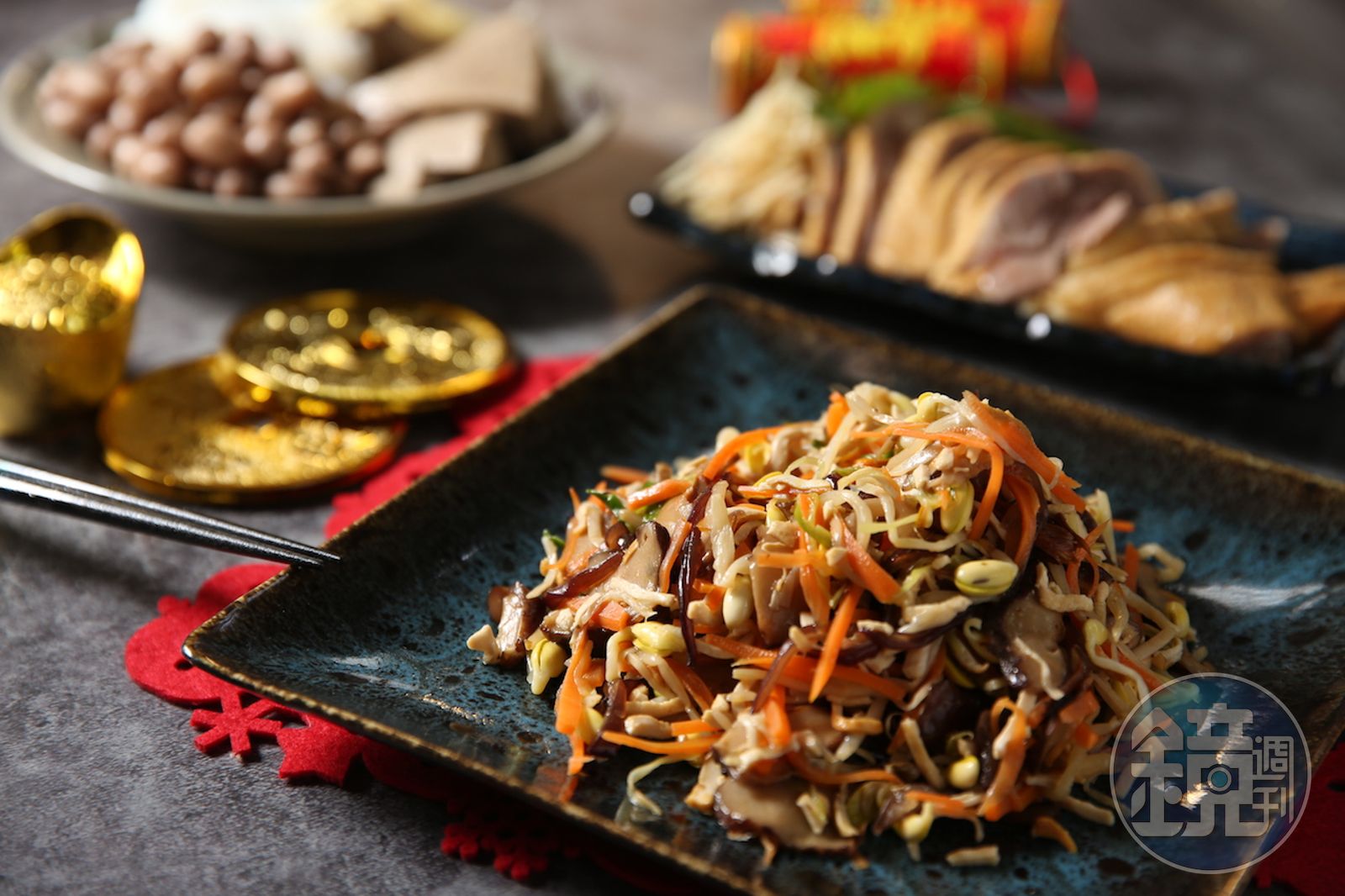 這道蔬食的重點在呈現多種蔬菜的鮮美清脆,看似簡單,卻是一道隱藏「勞力密集」的手工菜,因為食材考驗刀工和耐性,還得各別炒香,要悉心以對,帶有細巧的心意,品嘗時冷熱皆宜,隱味的醋香讓尾韻津美,「是我家圍爐宴裡大魚大肉裡頭一個盤底朝天的年菜。」韓良憶笑說。