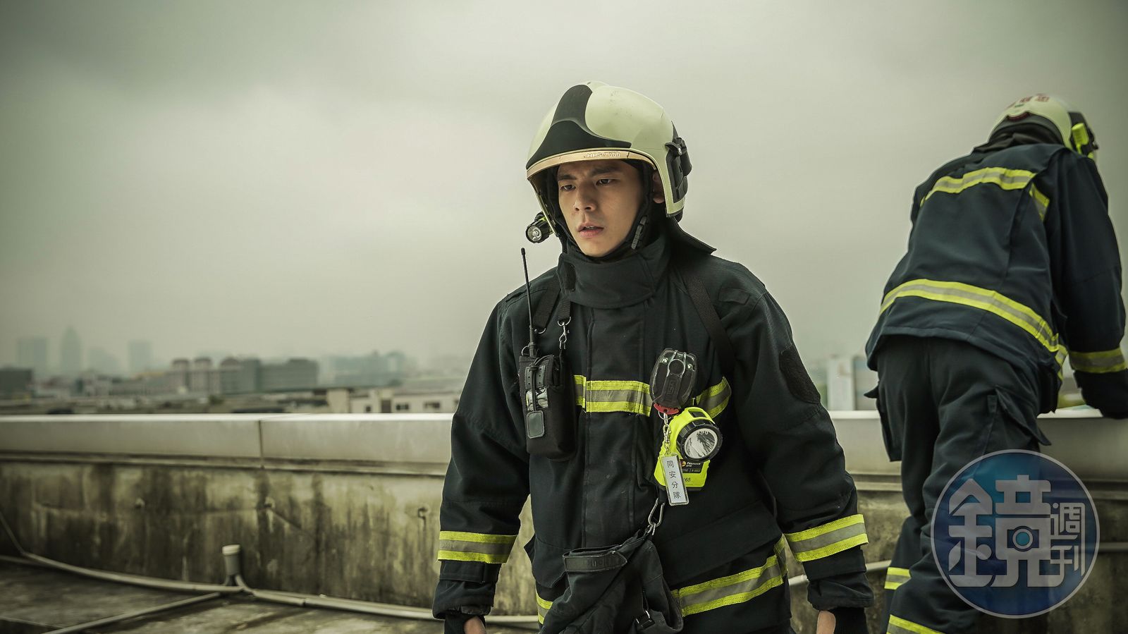 而林柏宏也坦言自己其實有懼高症,在拍攝7層樓高的天台救援時,內心是非常緊張的,他分享:「還記得在拍攝天台救援戲時,有一顆鏡頭是需要撲到7樓的牆邊向下看,對有懼高症的我真的覺得很恐懼,其實我就連看著芷瑩姐坐在牆邊都會起雞皮疙瘩。感謝劇組幫我們都在身上牽著鋼絲,真正在拍的時候就沒有想到自己的害怕,反而是感到措手不及想把對方拉回來,內心真的有股消防魂。」