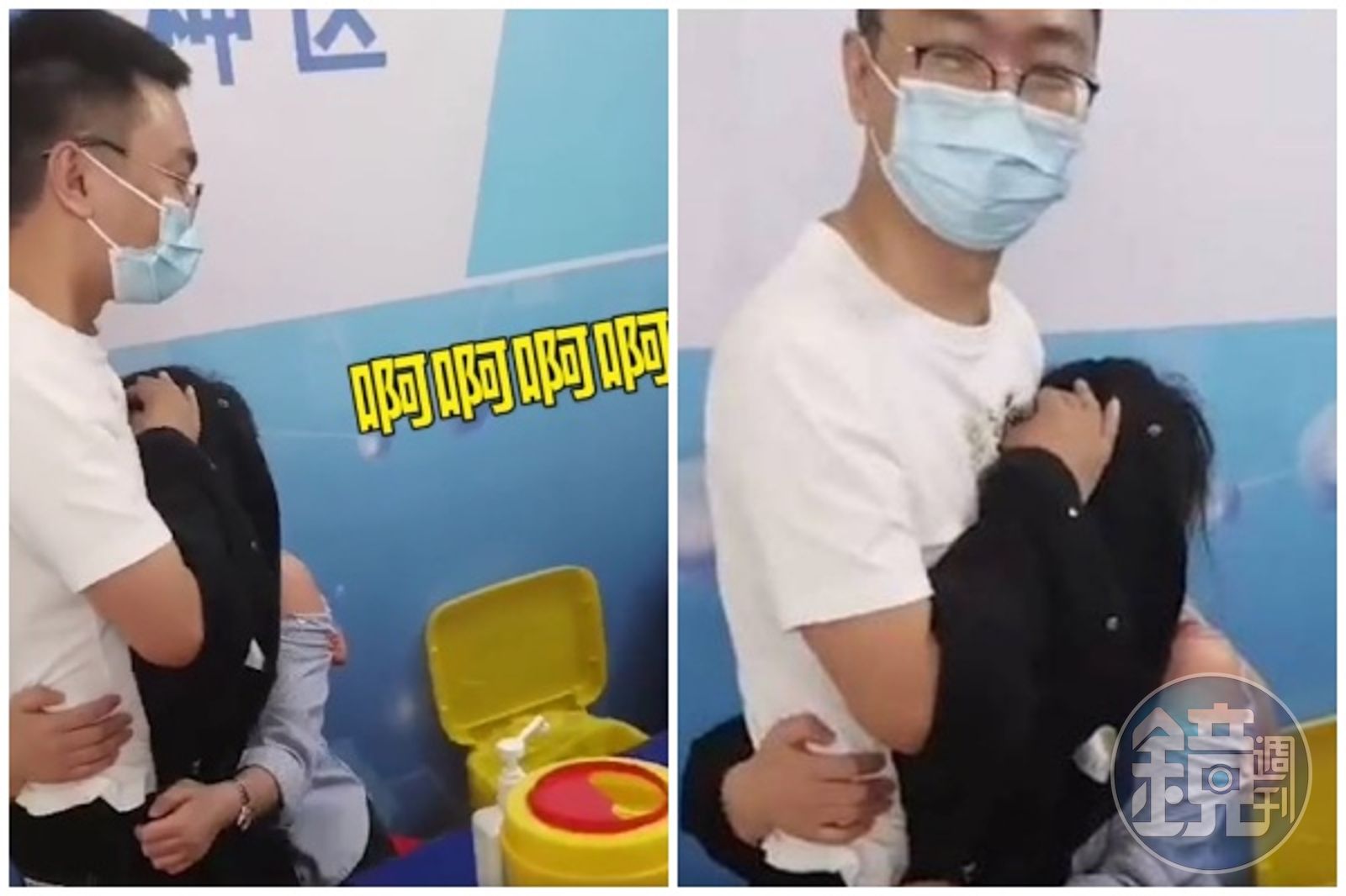 根據大陸媒體報導,潘女和3位男同事在公司安排下去打疫苗,但潘女非常害怕,因此ㄧ直緊抱身旁單身男同事,試圖尋求安全感,每當醫護人員拿著針筒靠近時,她就會放聲尖叫,讓醫護相當無奈,只能等她稍微冷靜後再繼續動作。