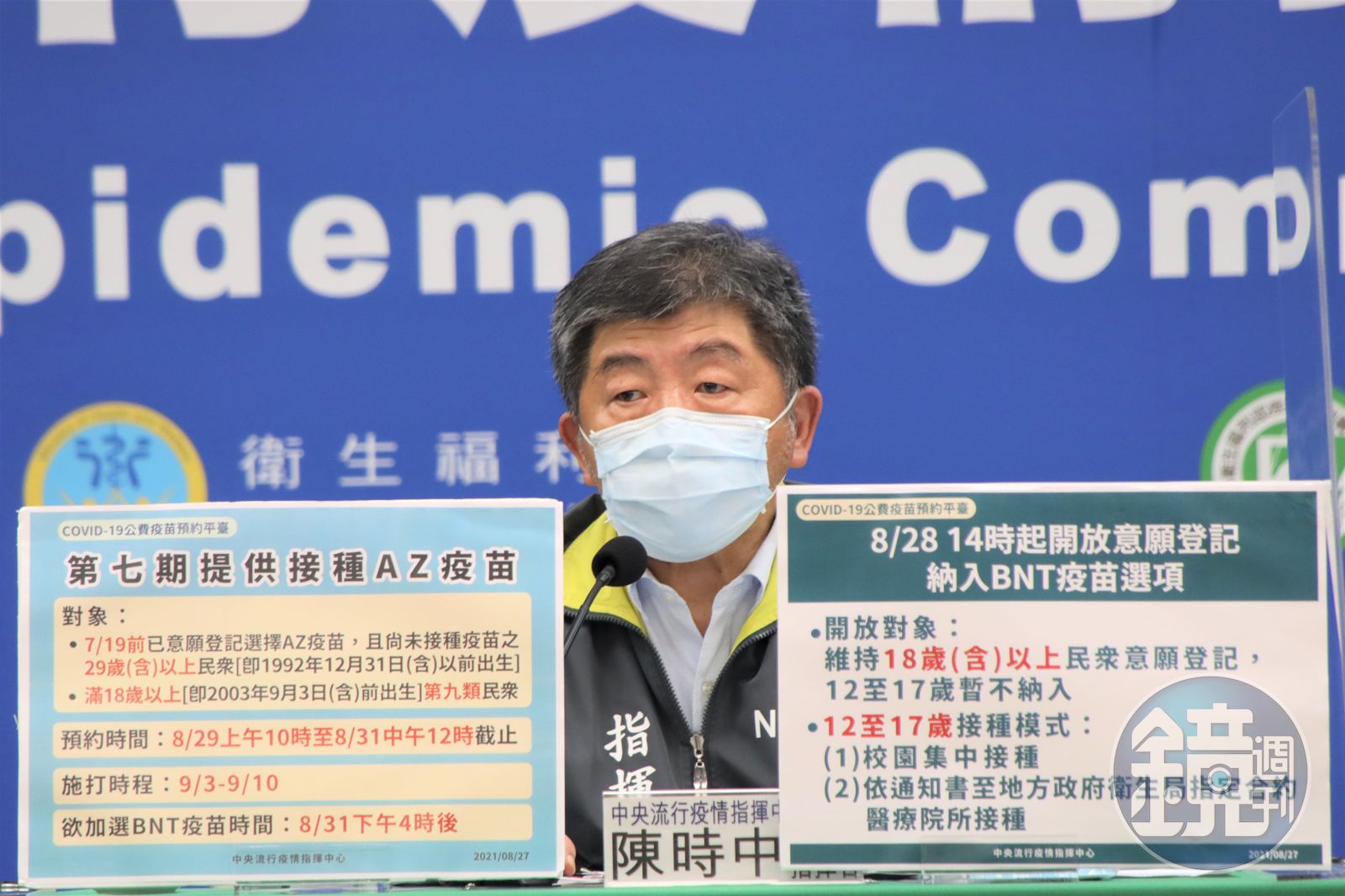 此外,指揮中心也提醒,第七輪AZ疫苗預約資格對象如欲增加選擇BNT疫苗,須於8月31日下午4時後始可加選;另已符合AZ疫苗第二劑接種間隔之民眾,將另行開放接種。