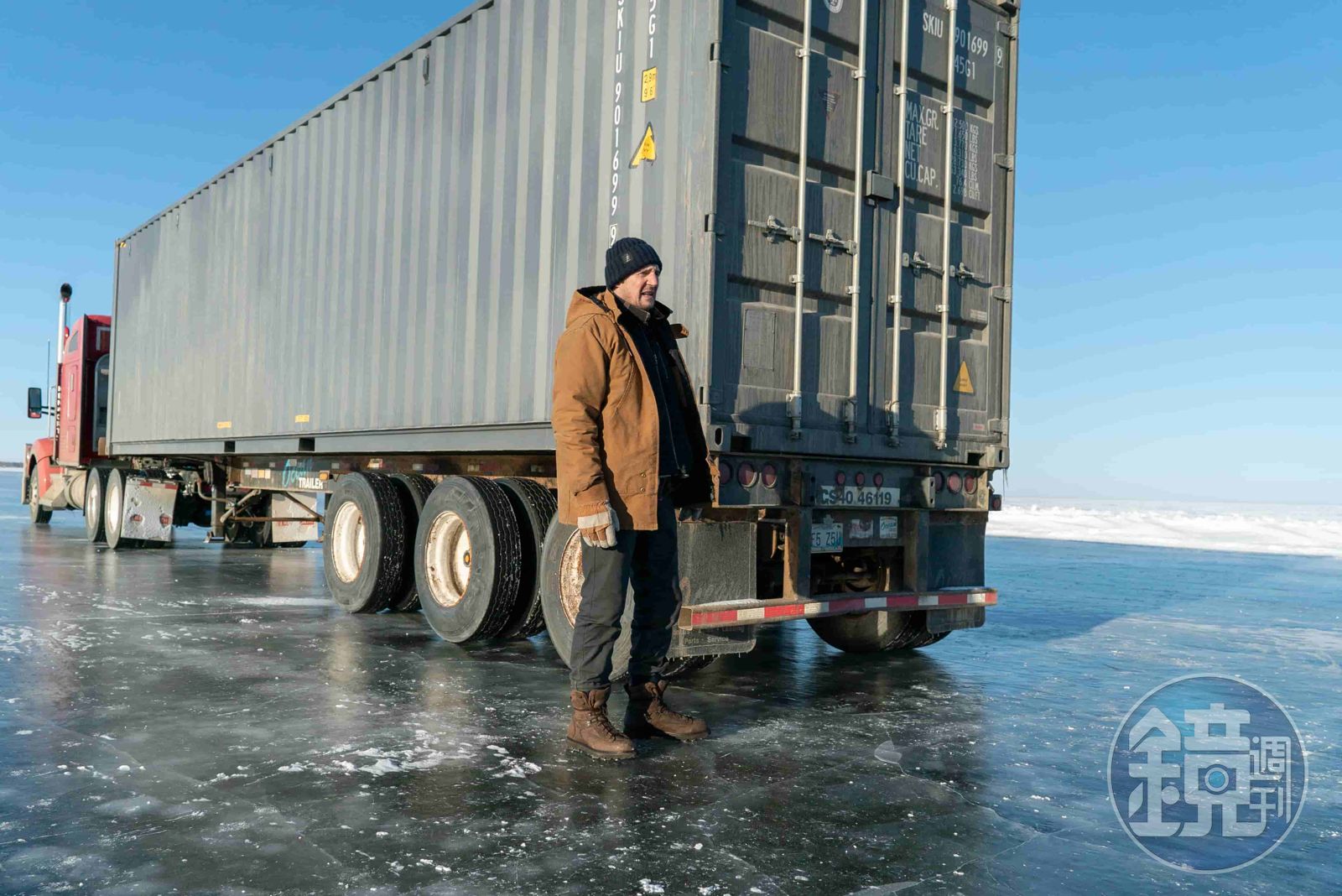 片中連恩尼遜駕駛巨型卡車,橫越300哩冰路前往營救一群被困在礦坑的礦工。(甲上提供)