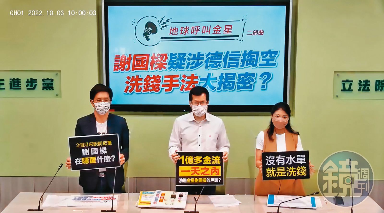 謝國樑認為,林冠百被起訴後,對手陣營就像「撿到槍」,對他不斷抹黑、污衊,還說他洗錢,對他的指控更是「每天一變」。一開始質問:「錢有沒有進到謝國樑的個人口袋?」隔天又改口罵他:「境外公司那麼多!根本是玩金錢遊戲!」還質疑謝的金星公司只是一個資本額700萬元的公司,為何能借出1億元?最後乾脆故意模糊焦點,酸他「這麼有錢」。