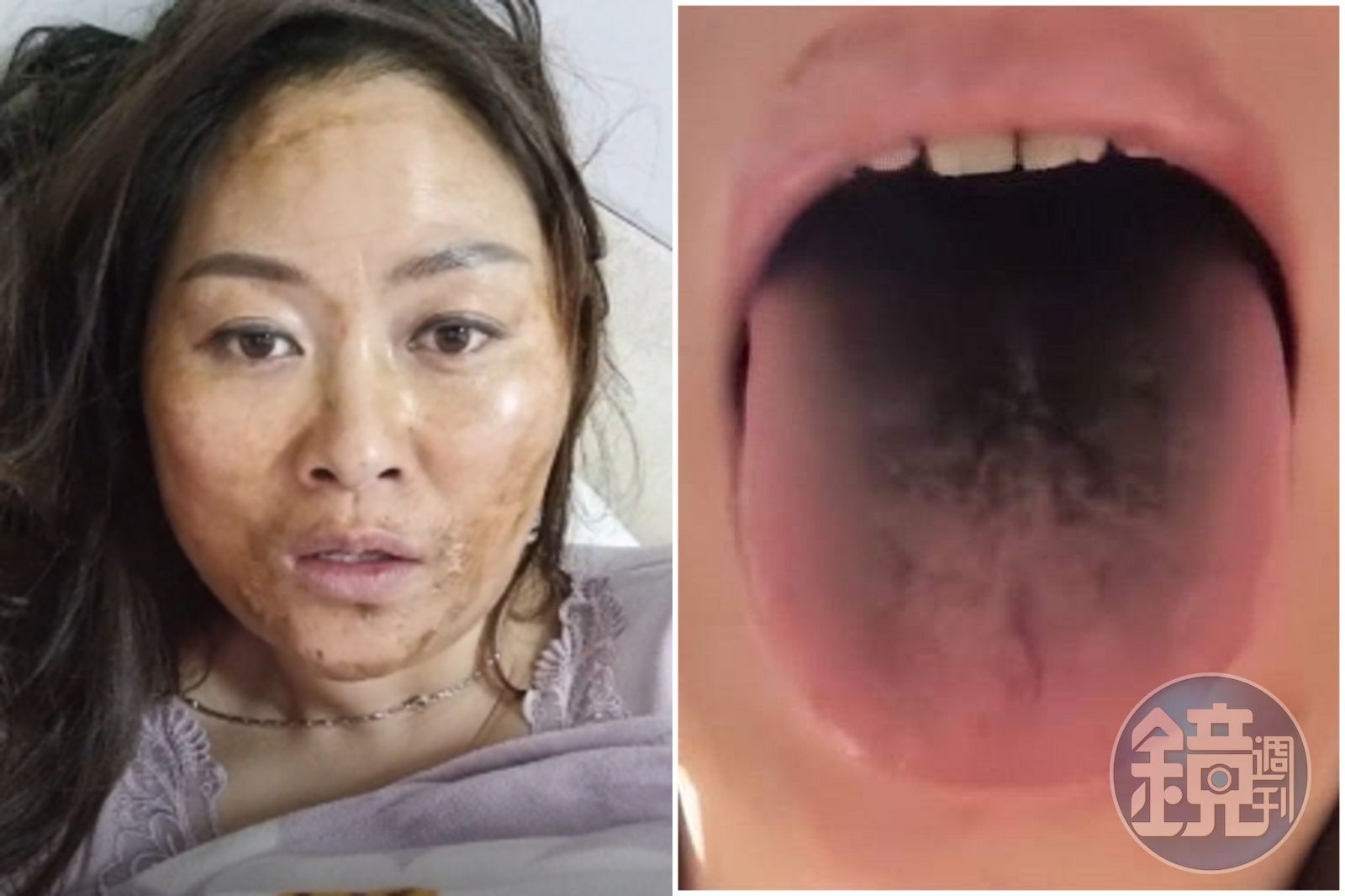 除此之外,現在不少中國民眾染疫後,紛紛出現「發黑」的怪現象。安徽一名女子確診後發高燒,嗓音嘶啞且上吐下瀉。但發病4天後,不僅人暴瘦,嘴唇脫皮,臉部還開始發黑,如同被毀容,這名女子就自嘲「現在連親媽都認不出了」。另外天津也有一名男子確診後,意外發現自己的舌頭、牙齒都是黑的。還有四川一名男子也稱,自己染疫後發燒昏迷,睡了3天醒來後,發現自己的眼皮變黑,比黑眼圈更像黑眼圈。