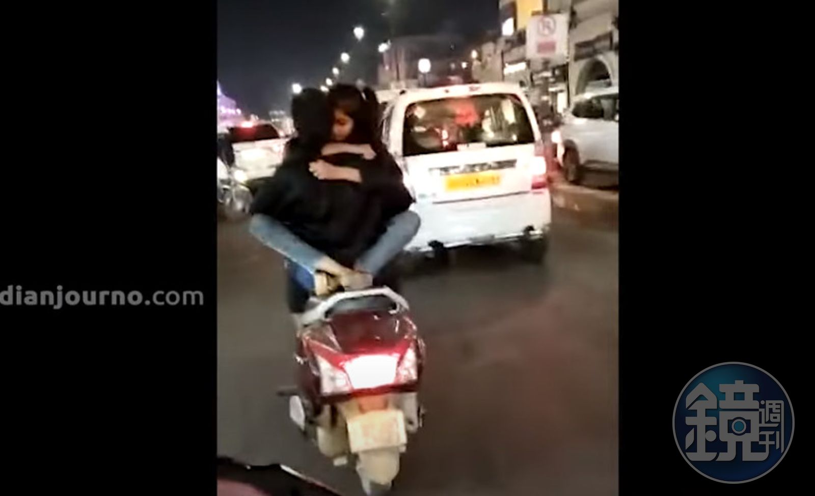 印度當地媒體報導,一對情侶騎車行經北方邦(UP)勒克瑙地區(Lucknow)時,竟邊騎車邊熱吻,女方甚至像無尾熊一般面向男友跨坐在他身上,雙腳交纏夾緊男友,沿路穿梭在車陣中,不時還忘情熱吻。
