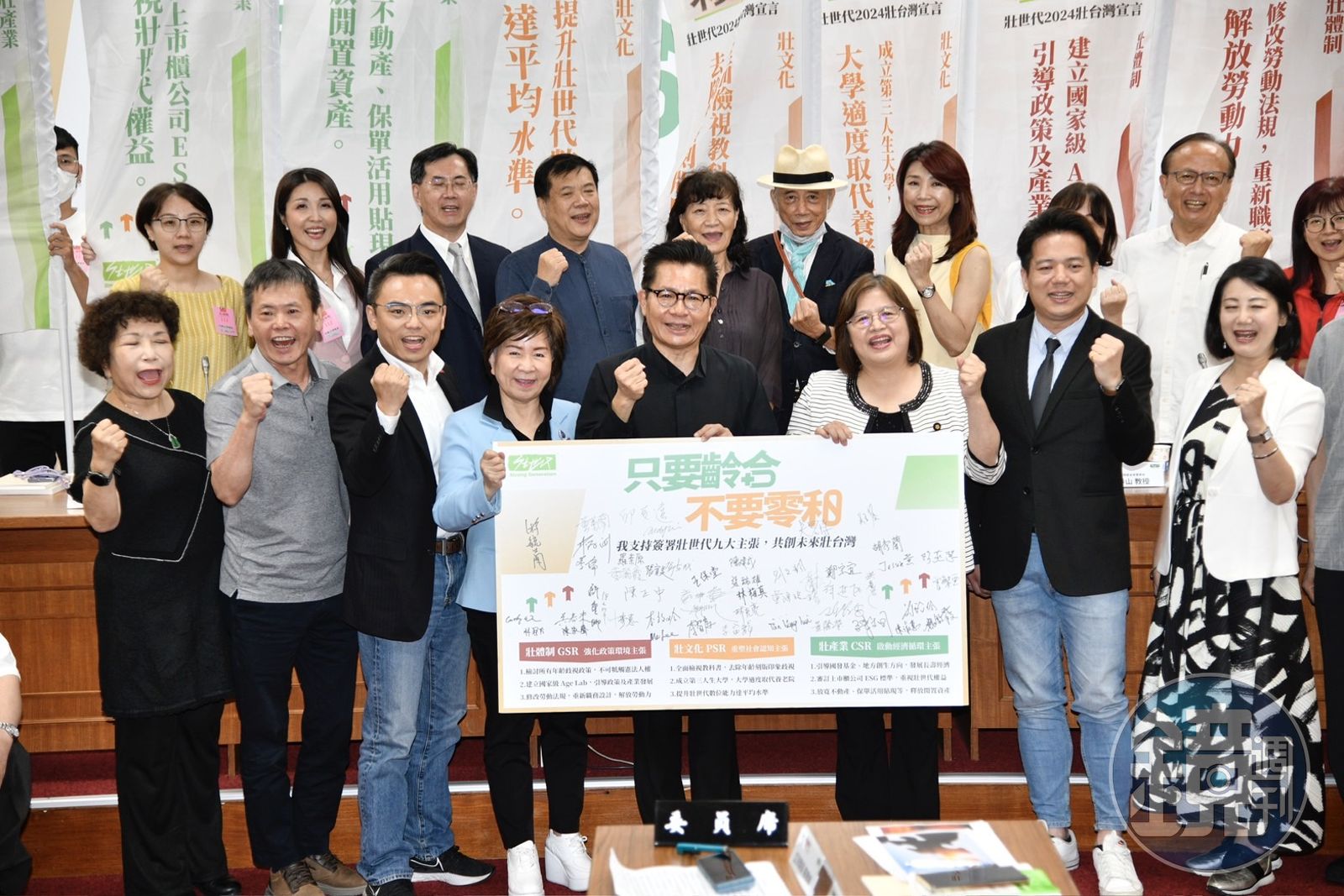 壯世代教科文協會提出包括建立國家級Age Lab、修改勞動法規、成立第三人生大學,審訂上市櫃公司ESG標準等政策建議,期望2024大選總統、立委候選人能對此回應,並簽署9大主張宣言,共同支持積極的高齡化政策承諾。