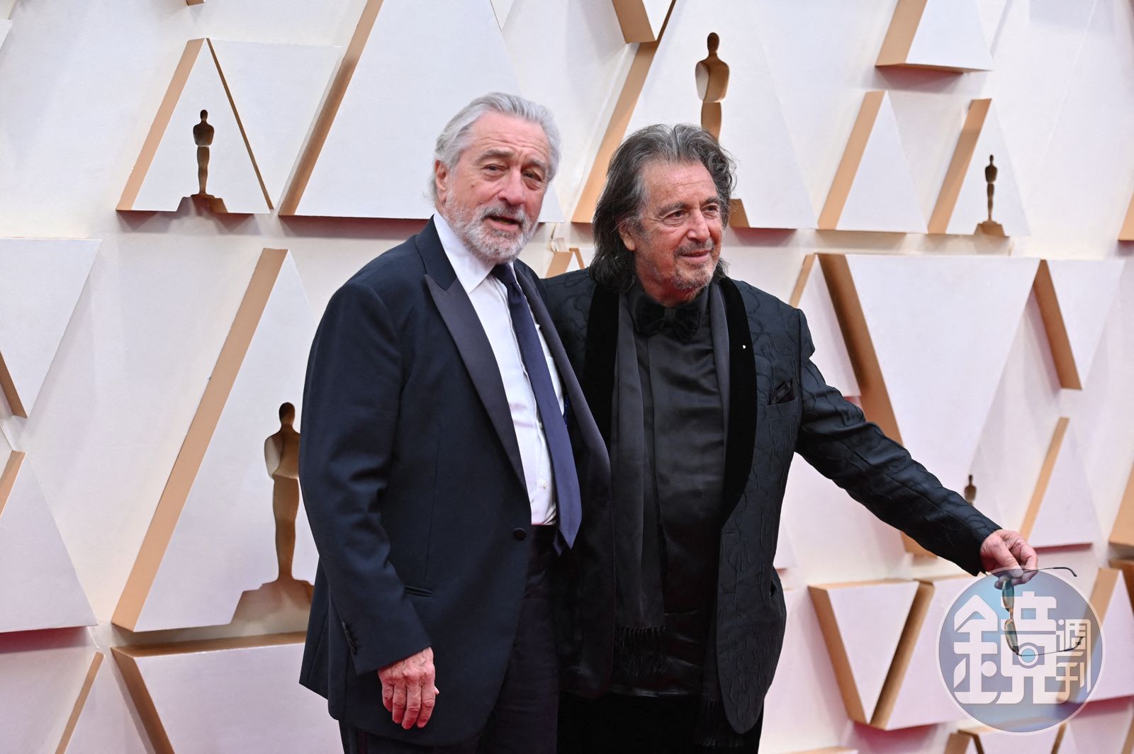 勞勃狄尼洛(左)與艾爾帕西諾(右)都是被視為戲路接近、惺惺相惜又彼此較勁的影帝,沒想到戲外又不約而同當上高齡老爸。(東方IC)