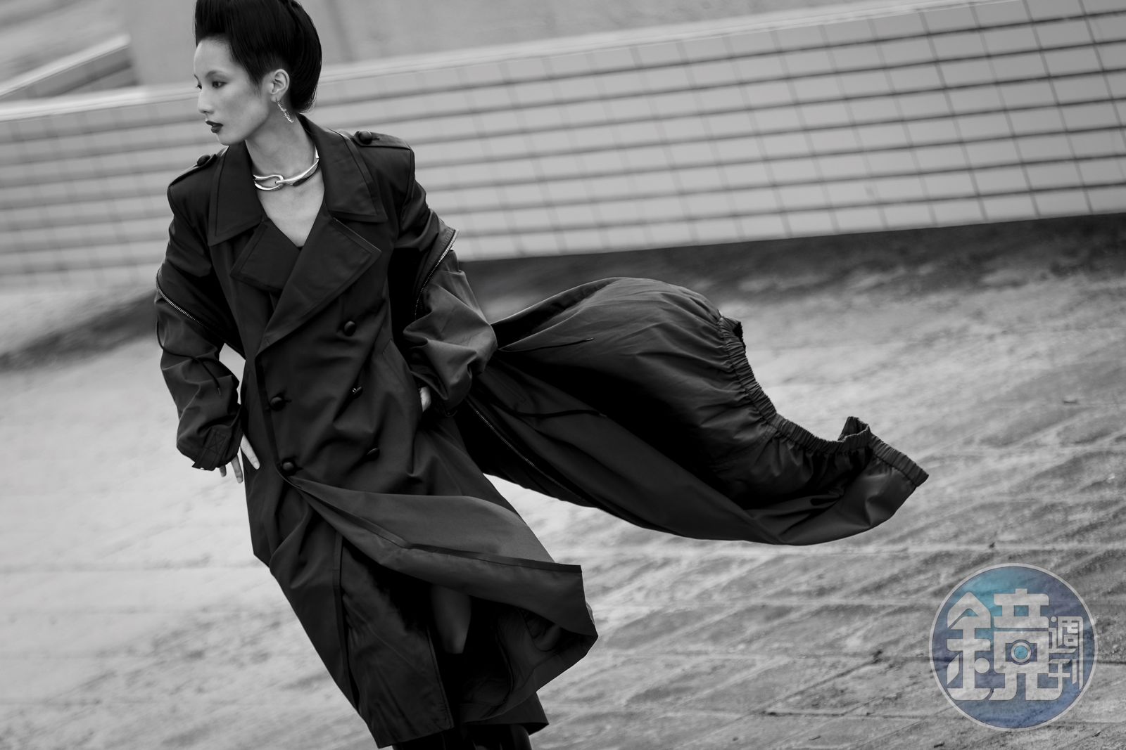 厚重的皮革、橡膠與輕柔的薄紗風衣,