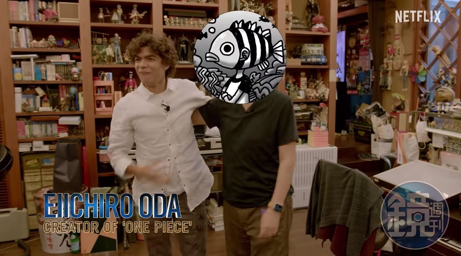 伊納基戈多伊前往拜會尾田榮一郎的路途中,就難掩興奮之情表示「去見尾田榮一郎本人,就像去見『蝙蝠俠』一樣。」之後就帶領觀眾進入尾田榮一郎的工作室,2人見面後先擁抱,但尾田榮一郎在片中並沒有以真面目示人,而是以後製的自畫魚頭形象遮蓋住頭部。