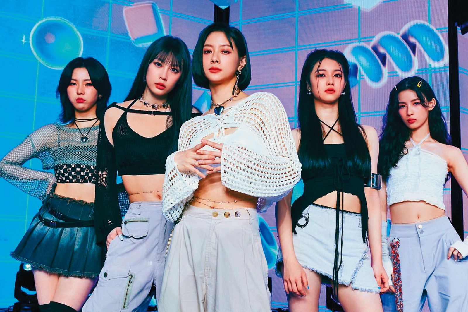 幻藍小熊的XXIN(中)、許 媛媛(右二)、毓(右一)、Bido(左二)及Ayeon(左一),在日前第8集的公演中,靠著精湛歌舞奪冠。(翻攝自Bido IG)發布時間:2023.10.11 05:58 臺北時間