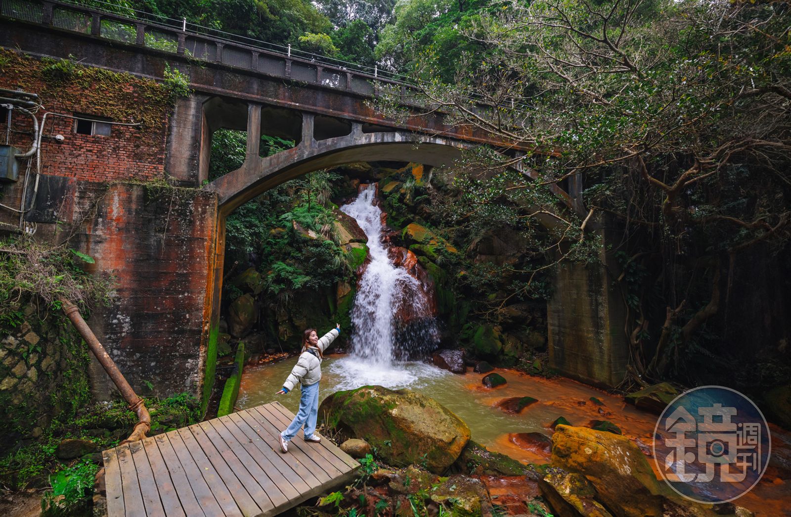 2023年開放、全長約1公里的「半嶺水圳步道」,則是草山的另一新亮點。步道起點為明玄宮,於鄰近藍寶石泉所在地的終點折返,沿著百年古圳漫步,流水清澈,水聲伴耳,偶遇種菜人家熱情打招呼,愜意悠閒。新穎的欄杆木棧步道平緩好走,最終直抵松溪瀑布觀賞平台,是條老少咸宜的走春路線。