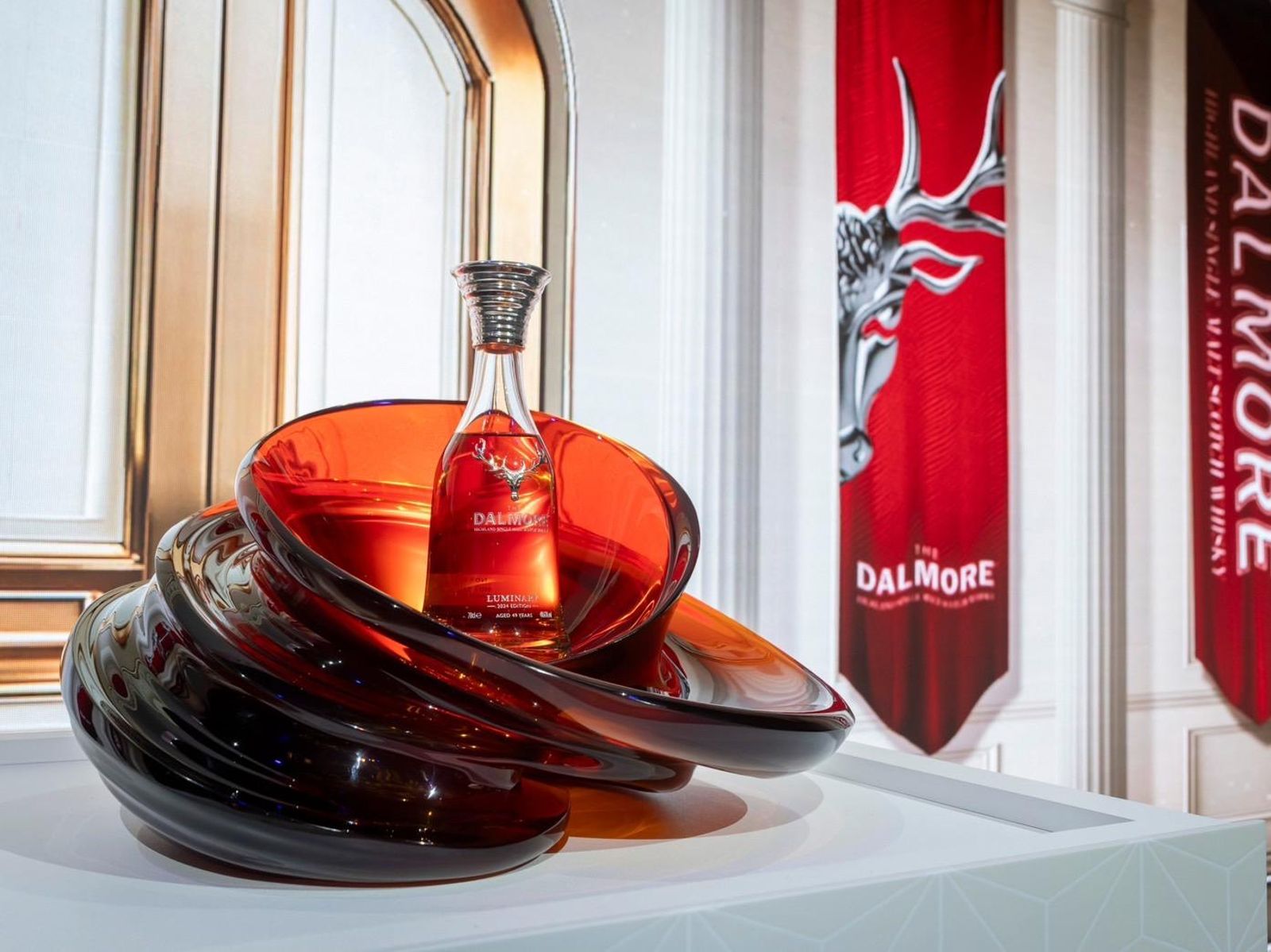 「Luminary築光大師系列」共有兩個酒款,包括全球限量僅僅3瓶的「珍稀49年單一麥芽蘇格蘭威士忌」,以及限量販售的「2024限定版」。其中要拿來拍賣的珍稀款,Melodie Leung以繼承自Zaha Hadid著名的有機體曲線風格,為大摩設計了一座非常壯觀的底座。Richard Paterson形容說,就好像搖動酒杯,威士忌酒液在杯中形成的漩渦,也有如蒸餾器中的盤旋而上的蒸汽。這個以玻璃工藝製作的雕塑,耗費500多個小時才能完成,因為製作過程非常困難,最後是聘請了The Glass Foundry的藝術家 Fiaz Elson,才能將設計變為現實。