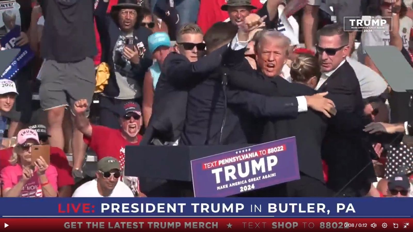 2024.07.14 07:21 臺北時間【快訊】造勢活動突傳槍響! 川普「臉部有血」被護送離場時事川普臉上有明顯血跡,緊急下台。(翻攝X)發布時間:2024.07.14 07:21 臺北時間更新時間:2024.07.14 07:56 臺北時間文 李昶毅已複製連結贊助本文加入訂閱會員美國大選川普槍擊拜登美國前總統川普13日於巴特勒造勢時,突然傳出槍響,川普摀住耳朵後,他在隨扈的護送下緊急下台;值得注意的是,川普臉上有明顯血跡,其競選團隊表示,他目前正在醫療機構接受檢查中,人很好。值得注意的是,川普被帶下台前還試圖掀起群眾情緒,他握緊拳頭喊話;美國特勤局則表示,正積極調查此案中。根據BBC報導,白宮表示,總統拜登已經接獲通報初步通報。更新時間|2024.07.14 07:56 臺北時間延伸閱讀放話當選總統就要抓「選舉操控者」進監獄 川普點名:祖克伯拜登堅持不退!同黨議員憂川普恐大獲全勝 民調點名換「她」選民主黨「換登」聲浪四起 川普「鼓勵」拜登選到底:毀滅美國讓中國再次偉大美最高法院裁定川普享刑事豁免權 拜登砲轟「危險先例」支持鏡週刊小心意大意義小額贊助鏡週刊!贊助本文每期 $35 元動態話題報導無限閱讀解鎖新鮮事加入訂閱會員鏡週刊加入追蹤訂閱下載鏡週刊加入追蹤訂閱下載更多內容,歡迎 鏡週刊紙本雜誌、鏡週刊數位訂閱、了解內容授權資訊。獨家深度分析報導線上閱讀