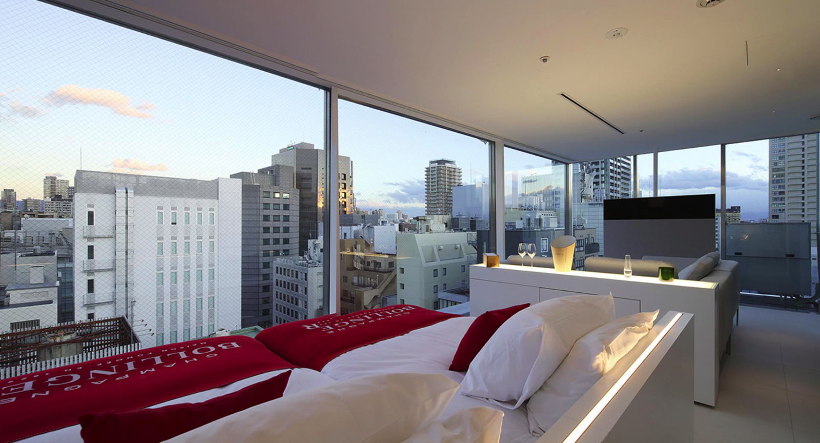與其說是飯店,Cuvée J2 Hôtel Osaka更像豪華私人公寓,15坪的寬敞空間裡不僅有舒服的大床,還有一座巨大的L型沙發,且每間房皆配有烤箱、咖啡機,房內附贈的小零嘴與巧克力皆能一邊小酌一邊享用。最特別的是,浴缸採用特殊溫控設計,熱水會一直保持在最佳溫度,主打「隨時沐浴」的頂級享受。