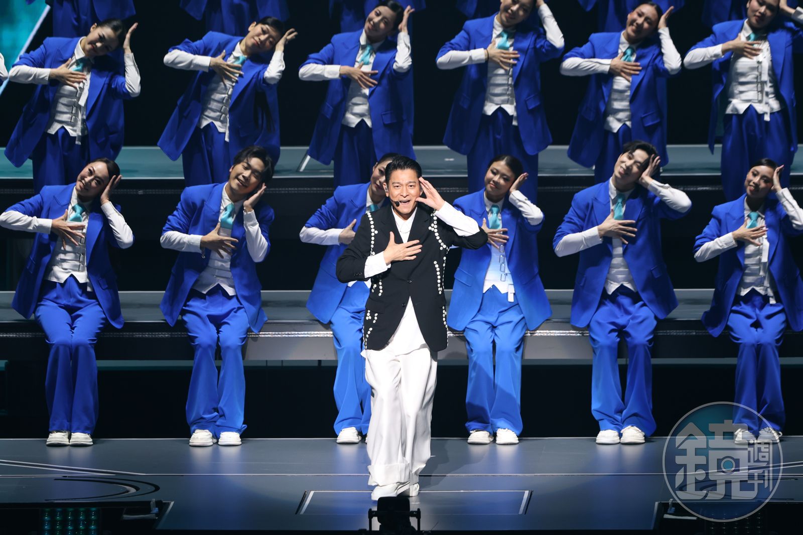 雖是撩妹,也顧及男歌迷心情,要男歌迷尖叫呼應他,唱到〈我恨我癡心〉時,他瘋狂熱舞,最後躺平在舞台上,接著拿起水壺要喝水,劉德華說:「連喝水也帥?對!我走在路上時,有個人跟我說『你呼吸很有型』,有一次我去洗手間,有人喊『欸,你!』 我阻止他說『不要~』。」似乎是深怕自己的重要部位被說出而曝光尺寸。