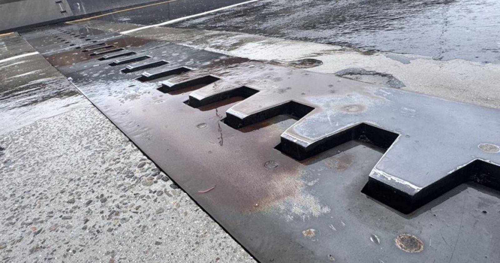 新北市養工處指出,P4齒型伸縮縫疑因長期車輛反覆輾壓,造成伸縮縫與橋面板間的固結鋼筋斷裂,引發路面局部下陷。為防止異常擴大及避免交通事故,將於今日晚間8時起至明(11日)凌晨6時進行搶修作業。 搶修期間,台北橋往台北方向的外側車道將全面封閉,請用路人改行內側車道,並配合現場交管人員指示,減速慢行,確保安全。 新北市養工處也提醒民眾,深夜橋面施工將影響部分通行效率,建議提前規劃路線,或視情況改道行駛,避免耽誤行程。施工期間如遇特殊天候或突發情形,將依現場實際狀況滾動調整施工時程。