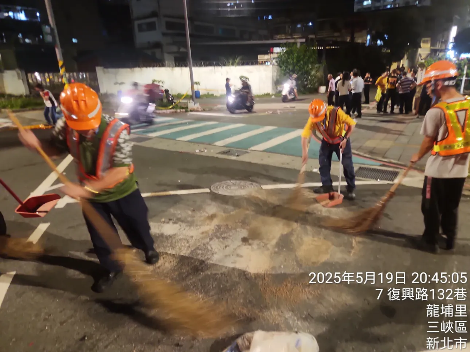 多名清潔隊員當時到現場清理車輛碎片及油漬。(翻攝自Threads)