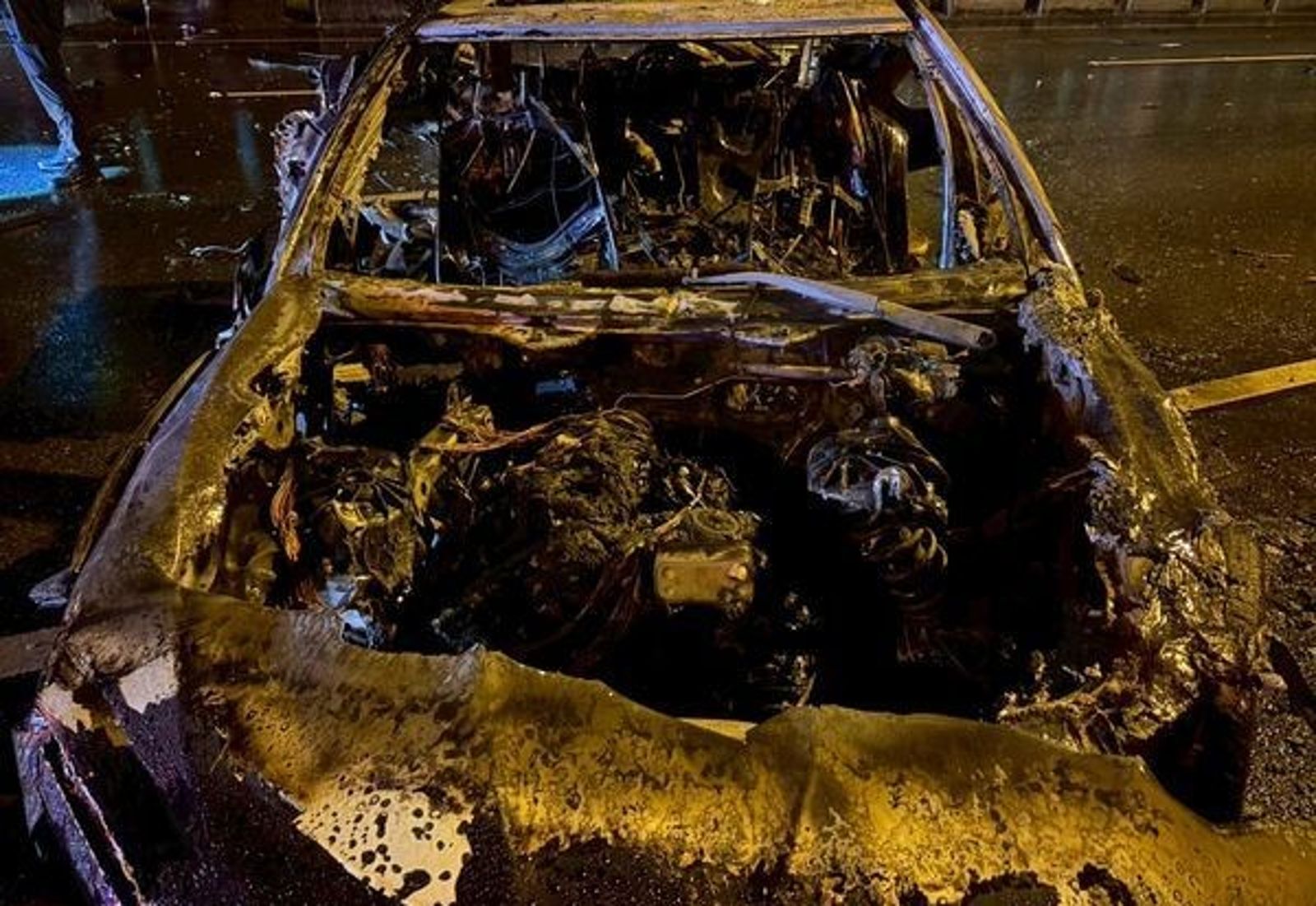 此外,根據現場畫面,車體嚴重燒毀,內部幾近焦黑,事故處理單位於凌晨2時46分完成現場清理,全線恢復通行。