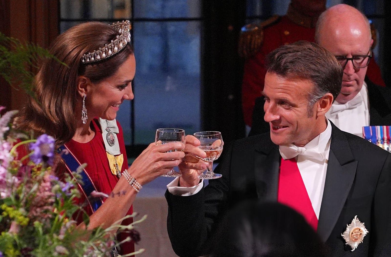 另外值得注意的是,凱特在國宴上穿紅色禮服,與王后卡蜜拉(Queen Camilla)穿的白色禮服、布麗姬穿的藍色禮服,恰好形成紅、白、藍三色的組合,與英法兩國國旗的色彩不謀而合。《Vanity Fair》報導指出,這一色彩搭配可能是有意協調的,象徵英法「友好協定」(Entente Cordiale)的精神。