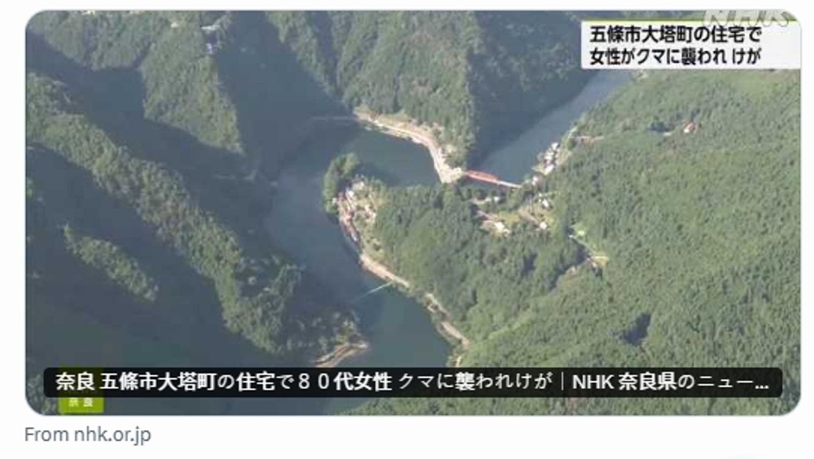 由於事發地點位於山區,僅有零星民宅分布,縣政府與警方正在調查詳情。奈良縣政府說明,這是今年第2起熊襲人事件,故呼籲民眾進入山區時,應隨身攜帶鈴鐺等會發出聲響的物品,並注意不要將廚餘等垃圾放置在戶外,以防吸引熊隻靠近。事實上,青森、北海道近期均出現棕熊襲擊人的事件。