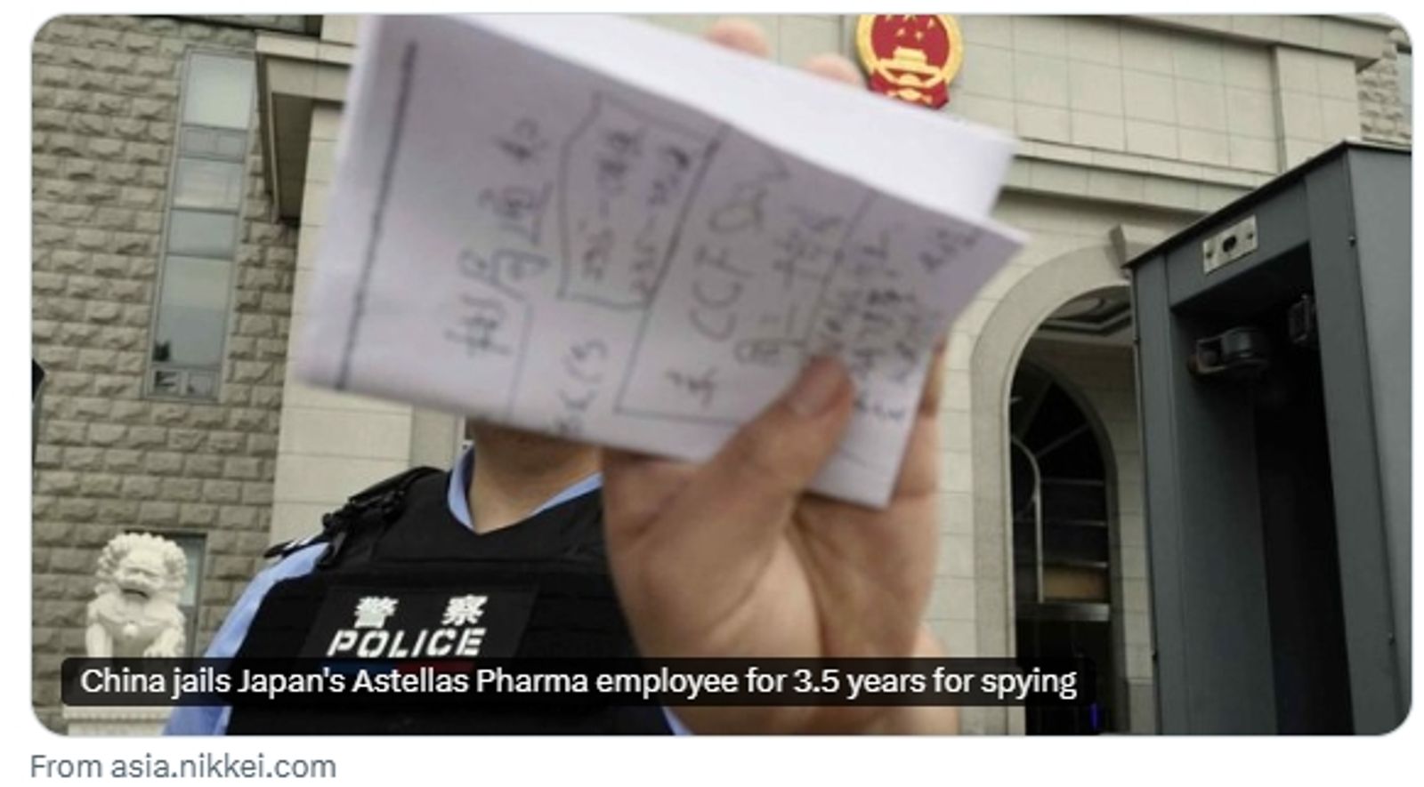 安斯泰來製藥回應,「我們已掌握判決情況,並正在提供支持以保障員工的健康與安全。」公司將透過日本外務省蒐集包括判決內容在內的資訊,並與相關部門密切合作,妥善應對。此外,1名日籍男今年5月也因「從事間諜活動」被判處12年。