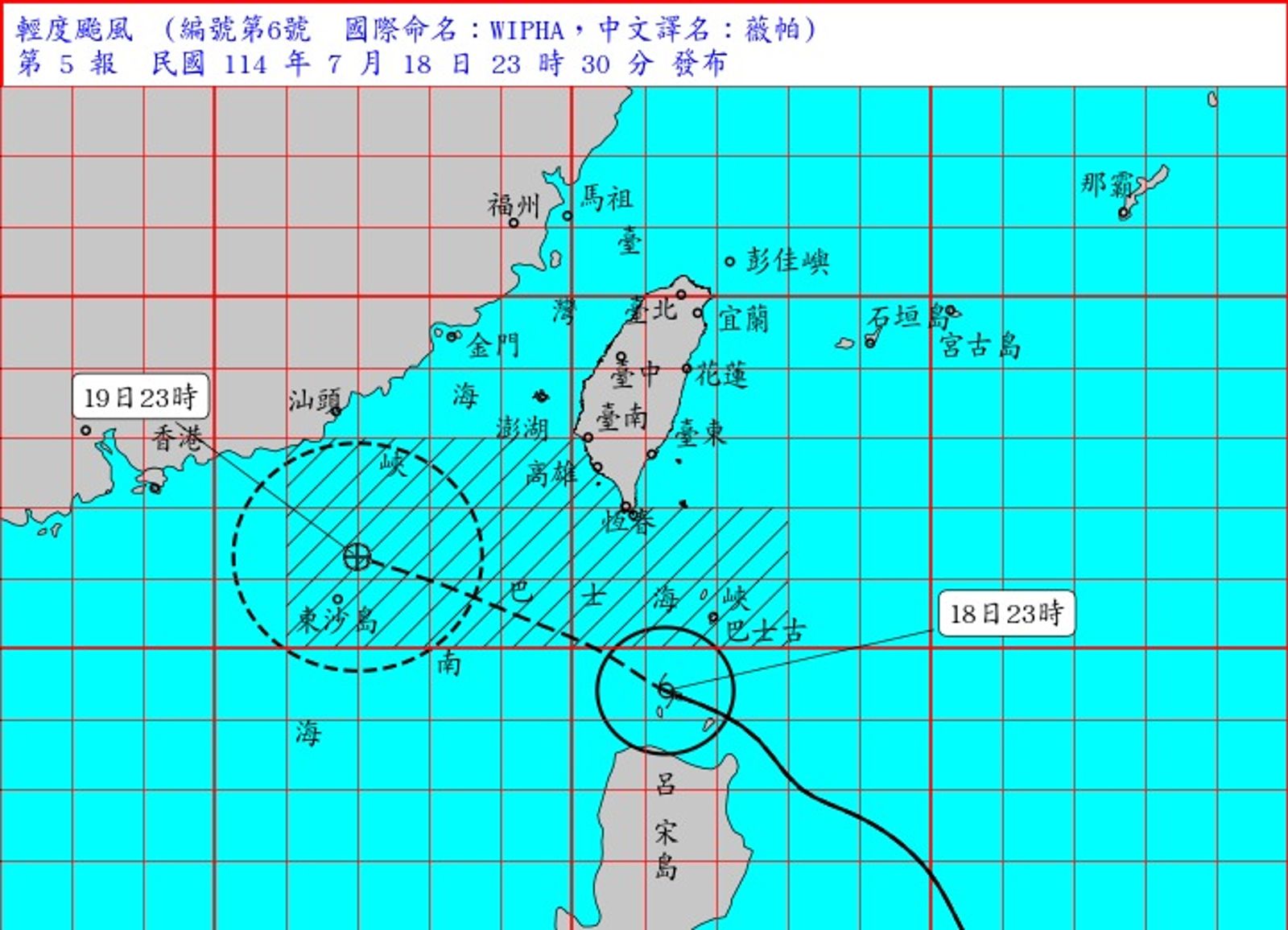 中央大學大氣科學系兼任副教授吳德榮今在「洩天機教室」發文指出,今、明兩天「薇帕」通過巴士海峽、進入南海,西半部有局部陣雨,東半部及屏東有「大量降雨」;各地風力增強,沿海及高山有較強陣風。據最新歐洲系集模式(ECMWF)皆顯示,今至下週三(23日)「薇帕」中心通過巴士海峽,進入南海,登陸廣東。