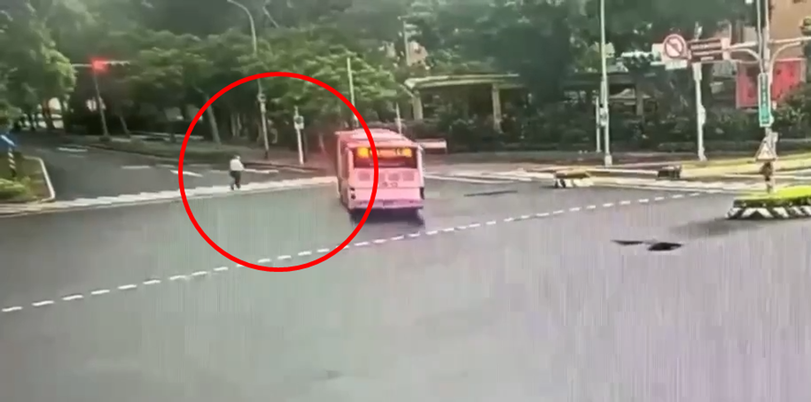 根據警方公布的路口監視器畫面,當時公車行駛至路口停下準備左轉,死者則步行至斑馬線中央,眼看公車即將啟動,死者趕緊加快腳步,用小跑步方式通過馬路,似乎以為公車會停住禮讓,沒想到下一秒他人直接被公車撞上拖進車底,公車直到越過斑馬線才停駛。