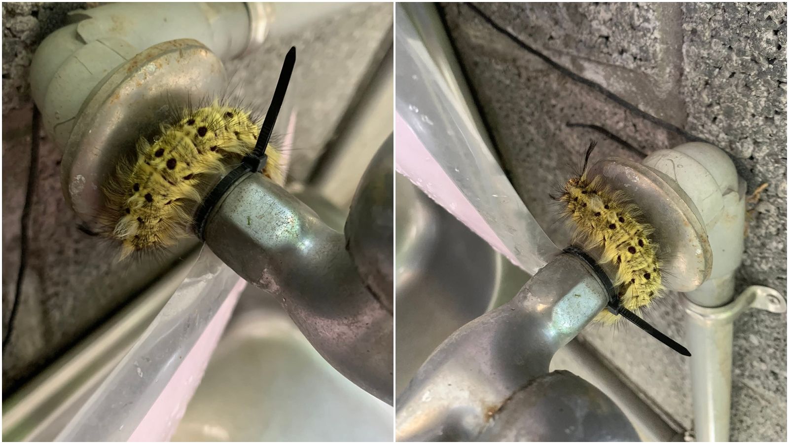 1名網友於臉書社團「爆廢公社2公開版」發文指出,上午在公司的洗手台洗杯子,卻無意間發現水龍有一隻超大的毛毛蟲,外型「黃綠色、毛茸茸,還帶刺,看起來超霸氣」,但也讓她嚇得不敢接近水龍頭。所幸勇敢的同事出手幫忙,將毛毛蟲移至外面,否則不少同仁應該不敢用洗手台。