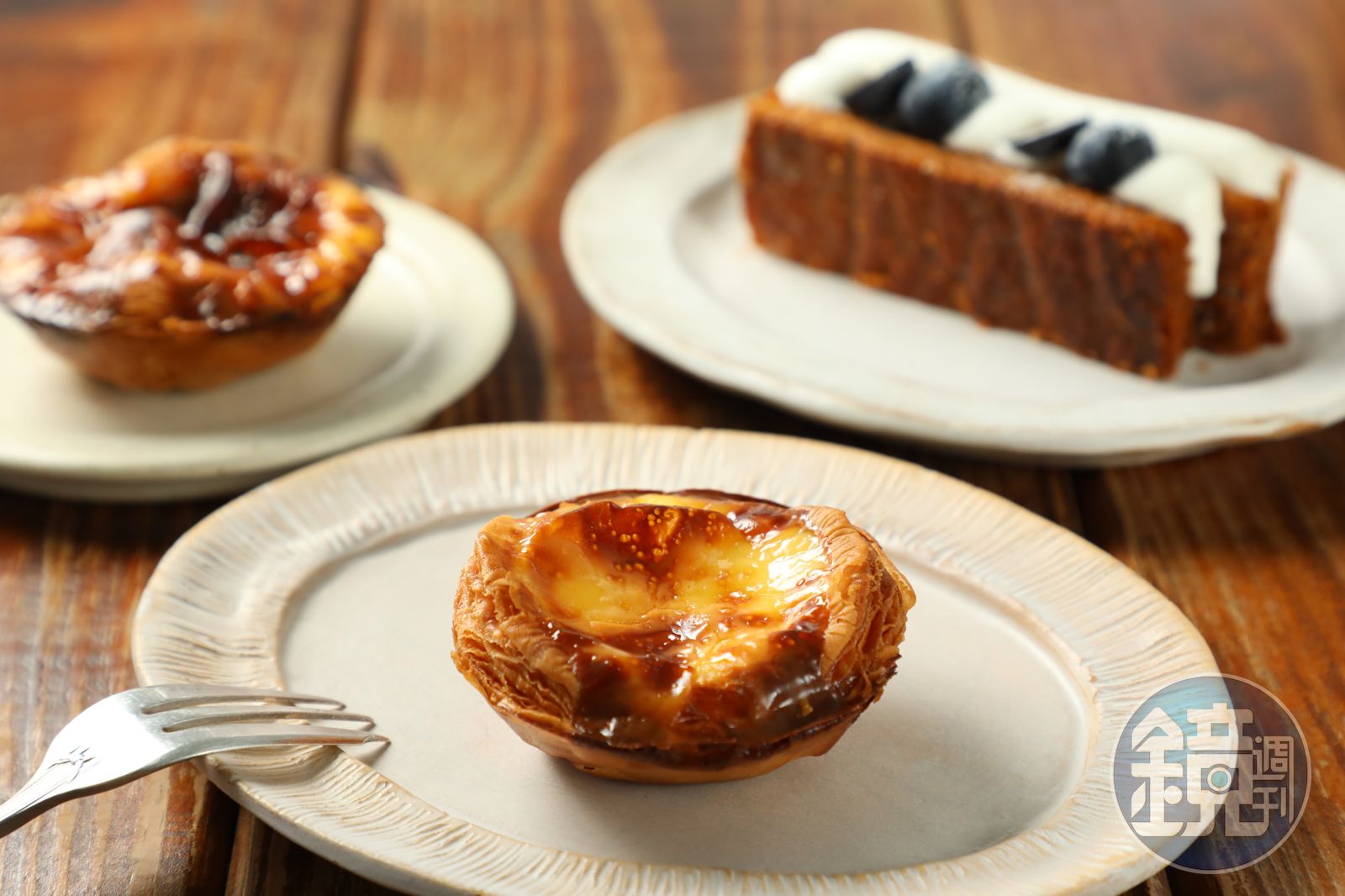 看完菜單,我們貪心的都點一輪,吃完人氣招牌「鹽可頌」還想再嘗「芋泥奶油小菠蘿」,最後再來一口改良後的「港式雞尾包」與「葡式蛋塔」。蛋塔外層使用千層酥皮製作,內餡則是用雞蛋與鮮奶油調和,烤得外皮香酥、內裡滑嫩,小小一顆吃完真的還不夠。