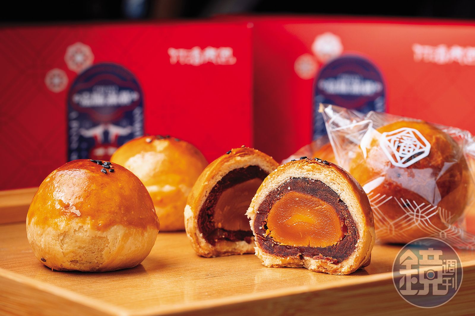 阿潘的「蛋黃酥」以長達40分鐘烘烤著稱,比市面上蛋黃酥多出一倍時間,全靠師傅多年經驗,才能在保持外層酥脆如餅乾的同時,維持內餡濕潤不乾硬。紅豆餡以減糖配方呈現豆香純粹;鹹蛋黃則嚴選至少醃製21天的紅土鴨蛋,並用金門高粱酒清洗去腥,再以米酒噴灑。最後由人工逐顆嗅聞篩選,確保每顆鹹香不帶異味,這些繁瑣工序,正是阿潘蛋黃酥穩定美味的祕訣。