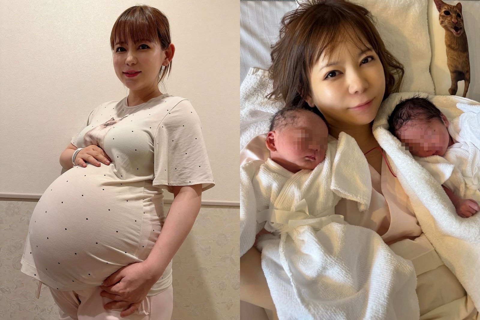 中川透露,9月17日住院備產時,正逢父親中川勝彦的忌日,她感到父親在守護自己,因此能安心迎接生產。生產前,她的腹圍達115.5公分,腹中2名男嬰體重總共約5公斤,活動不便,夜間僅能睡2小時。她以插畫記錄孕期生活,也分享了孩子名字的構思與醫院美味的減鹽餐點,獲得許多孕婦與媽媽共鳴。