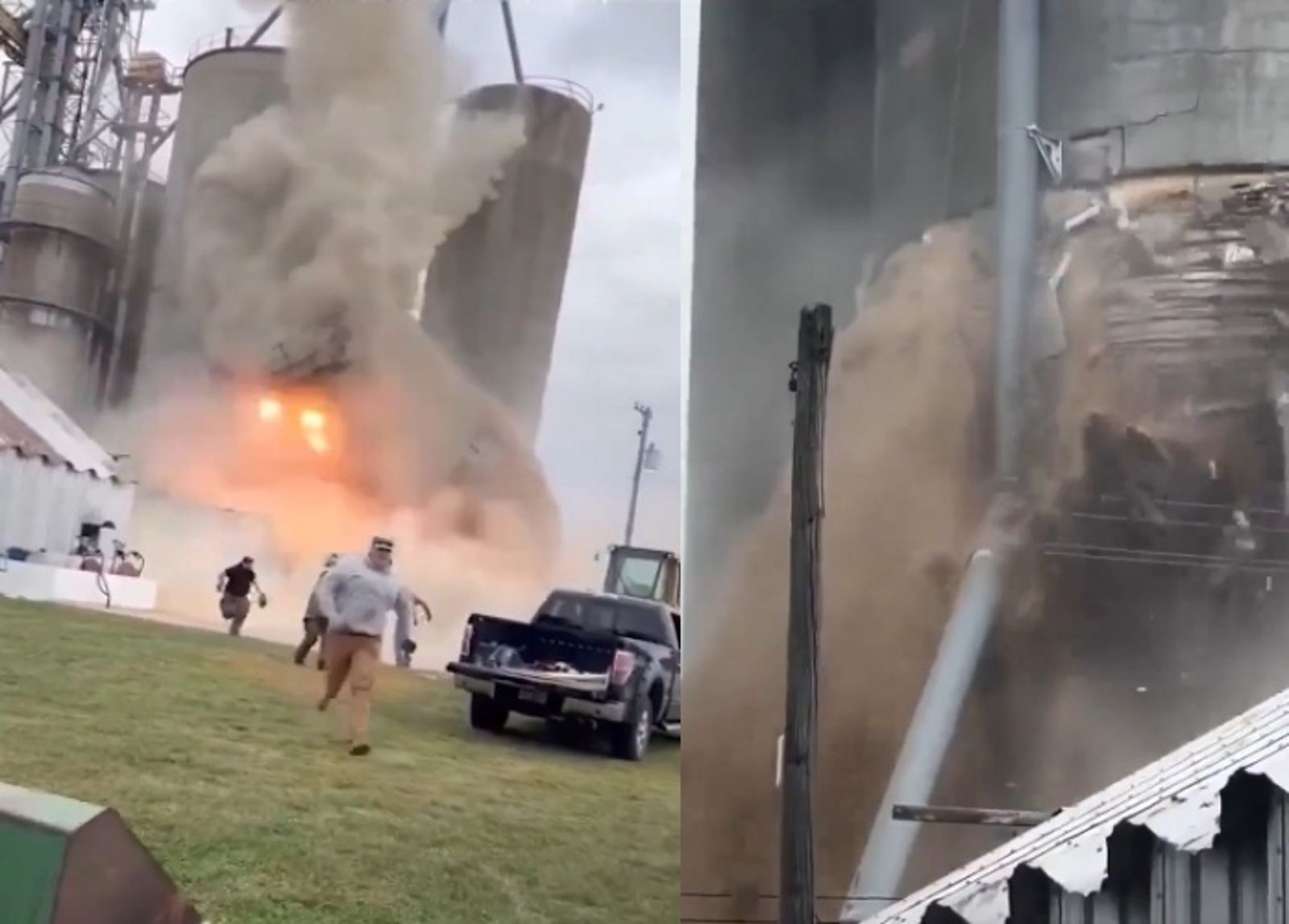 據《NBC》報導,伊利諾州易洛魁郡(Iroquois County)一間豆農的穀倉上週三(15日)發生爆裂事故。當時穀倉因堆積過多黃豆,結構不堪負荷,開始出現裂縫。消防單位趕抵現場後,立刻協助撤離人員。隨後,巨大的穀倉轟然崩塌,濃煙與黃豆瞬間四散,所幸並無人員傷亡。